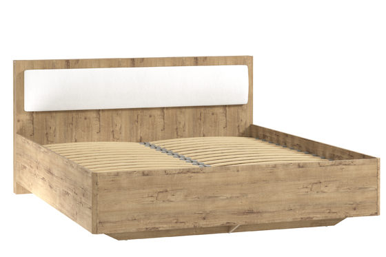 Кровать Муссон 11.28 с ортопедическим основанием и подъемным механизмом, дуб эндгрейн элегантный, кожзам белый