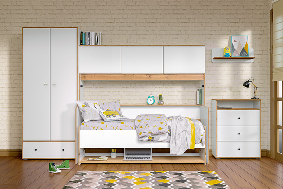 Детская комната Морти композиция 1 дуб бунратти, серый, белый, велюр Вивальди 2