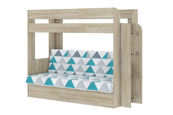 Кровать детская Морти НМ 041.20 с ортопедическим основанием, дуб бунратти, белый, велюр ультра смог без ящика