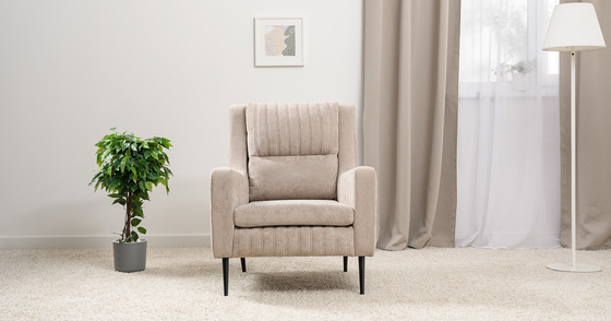 Кресло для отдыха Монако велюр Вивальди 4 бежевый с пружинным блоком (высота опор - 120 мм)