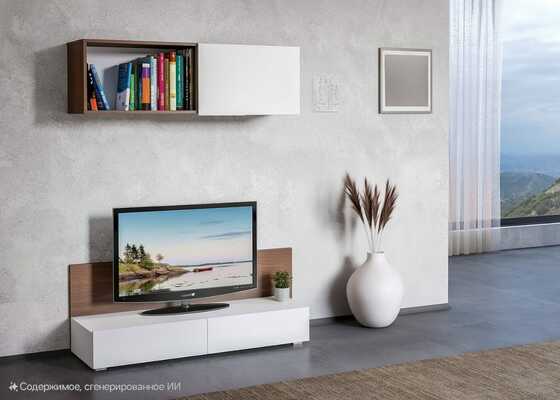Тумба под ТВ в гостиную Ливерпуль, белый, ясень ваниль ПВХ