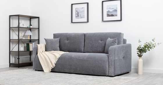 Диван-кровать прямой Наоми ТД 482 шенилл графитовый серый, микровелюр серый