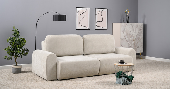 Диван-кровать прямой Оксфорд 710 композиция 3, шенилл Muza 04 светло-бежевый, модульная система