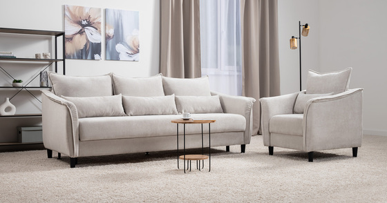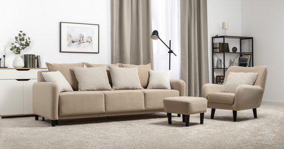 Диван-кровать прямой Оксфорд 710 композиция 3, шенилл Muza 04 светло-бежевый, модульная система