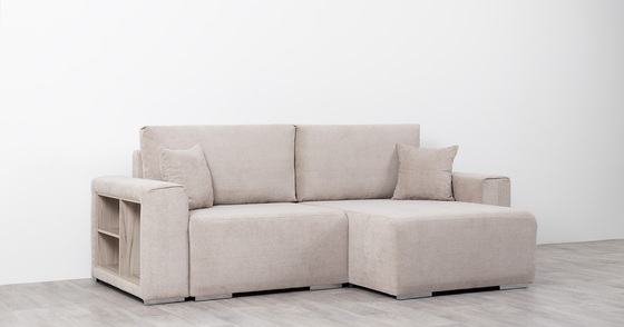 Диван-кровать угловой Тэдди 1502 композиция 3, букле Pique 006 бежевый, модульная система, сборка на любую сторону