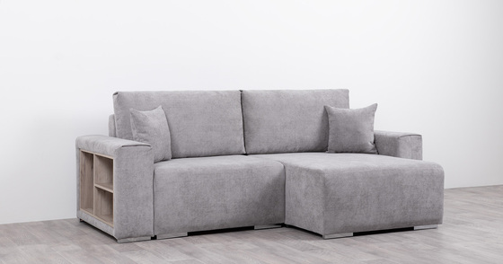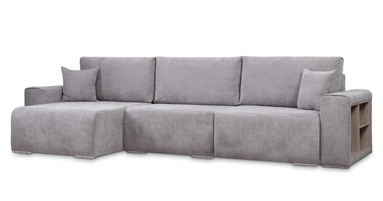 Диван-кровать угловой Тэдди 1506 композиция 2, букле Pique 011 серый, модульная система, сборка на любую сторону