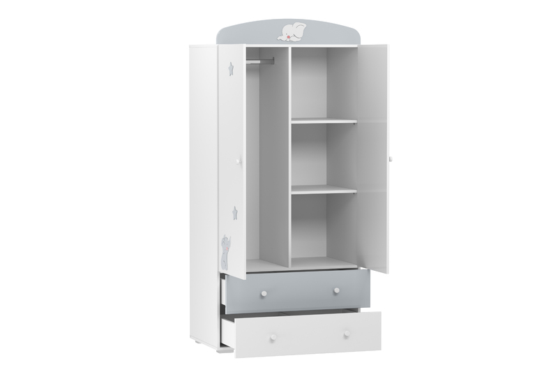 Детская комната Лилу композиция 3 (Слоники, Белый/Серый (эмаль), Белый Скандинавский)