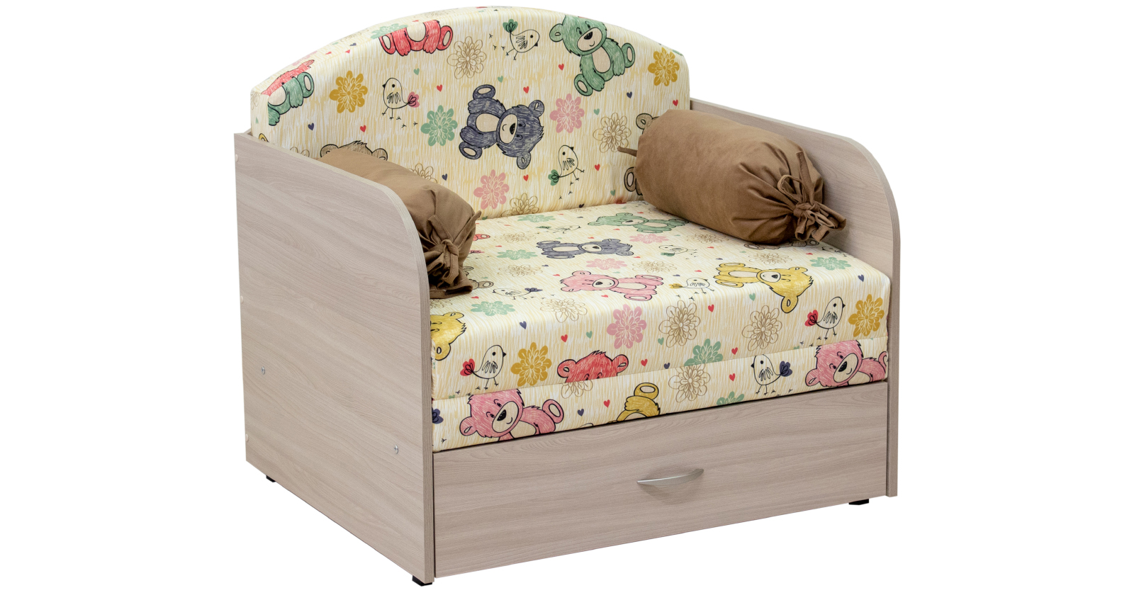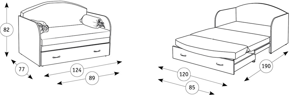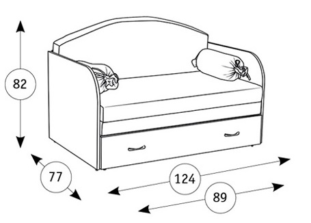 Милый диванчик Антошка 1 с радостью будет разделять уют комнаты Вашего ребёнка. Компактность модели позволяет разместить Антошку 1 в комнате близняшек индивидуально каждому малышу отдельное спальное место.