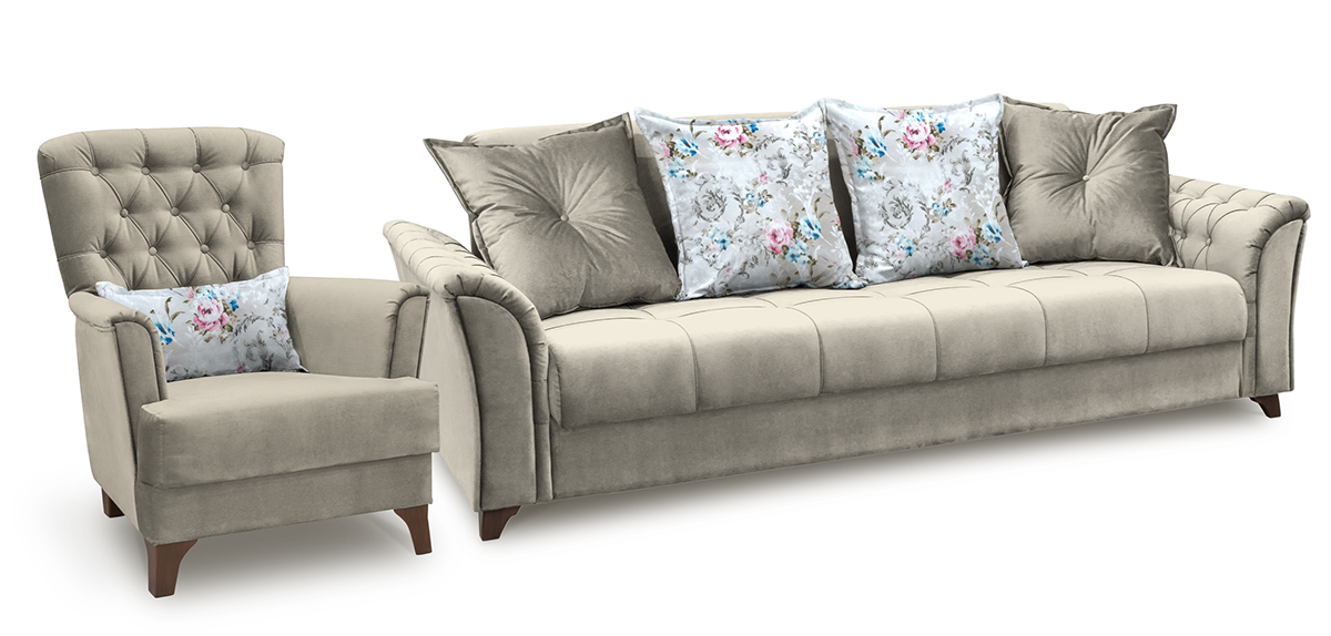 Элегантные и комфортные диван-кровать и кресло в стиле «неоклассика» удачно впишутся как в классический, так и в современный интерьер.