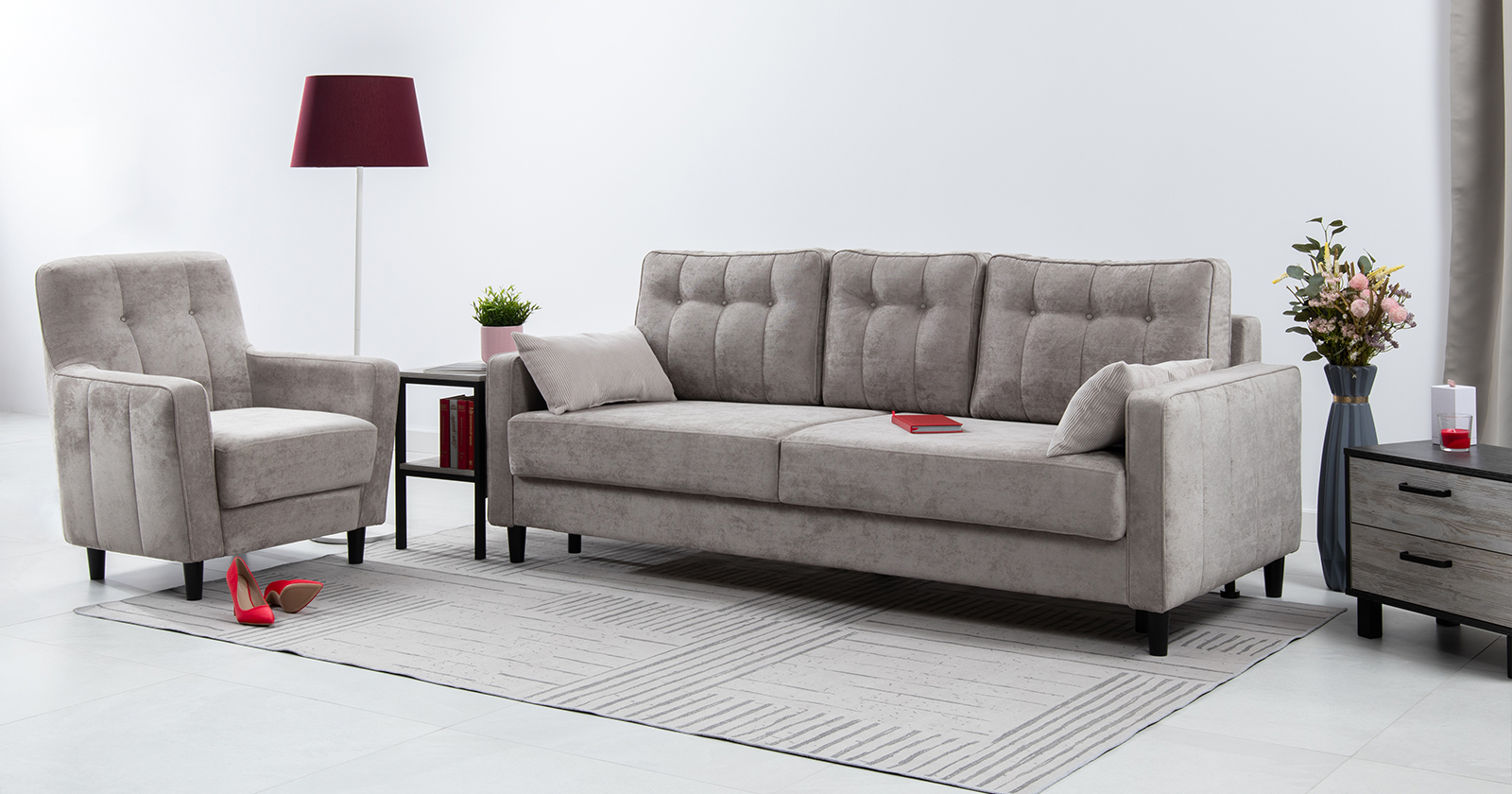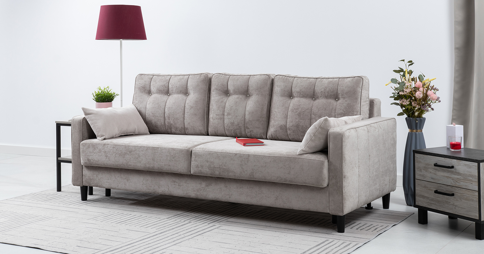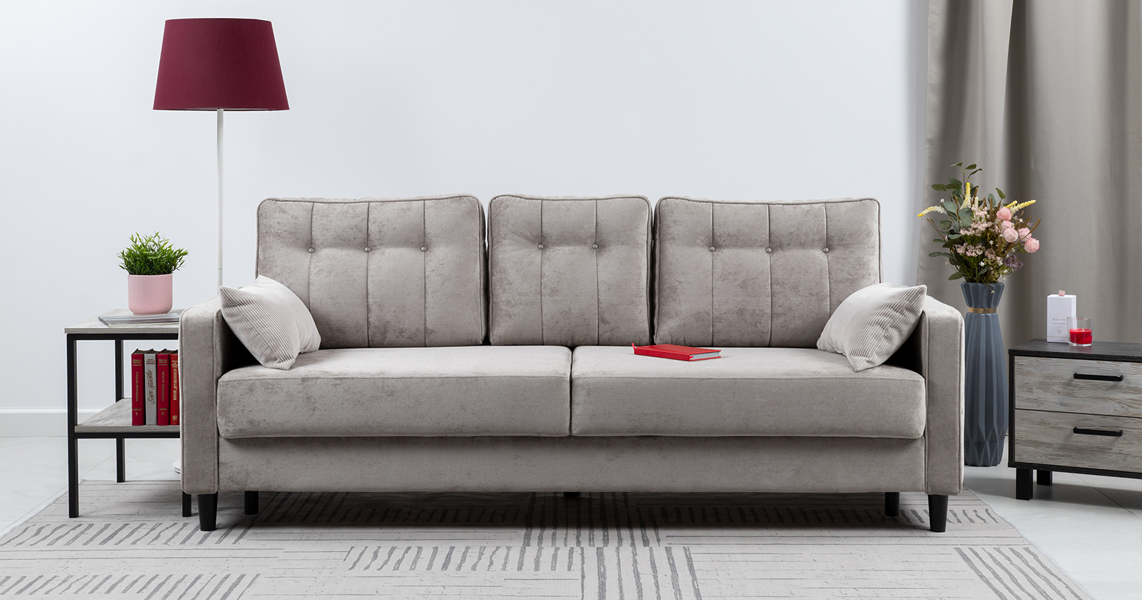 Диван-кровать прямой Арно ТД 567 велюр Лаки 17 пепел розы, Vertical 910 молочно-серый