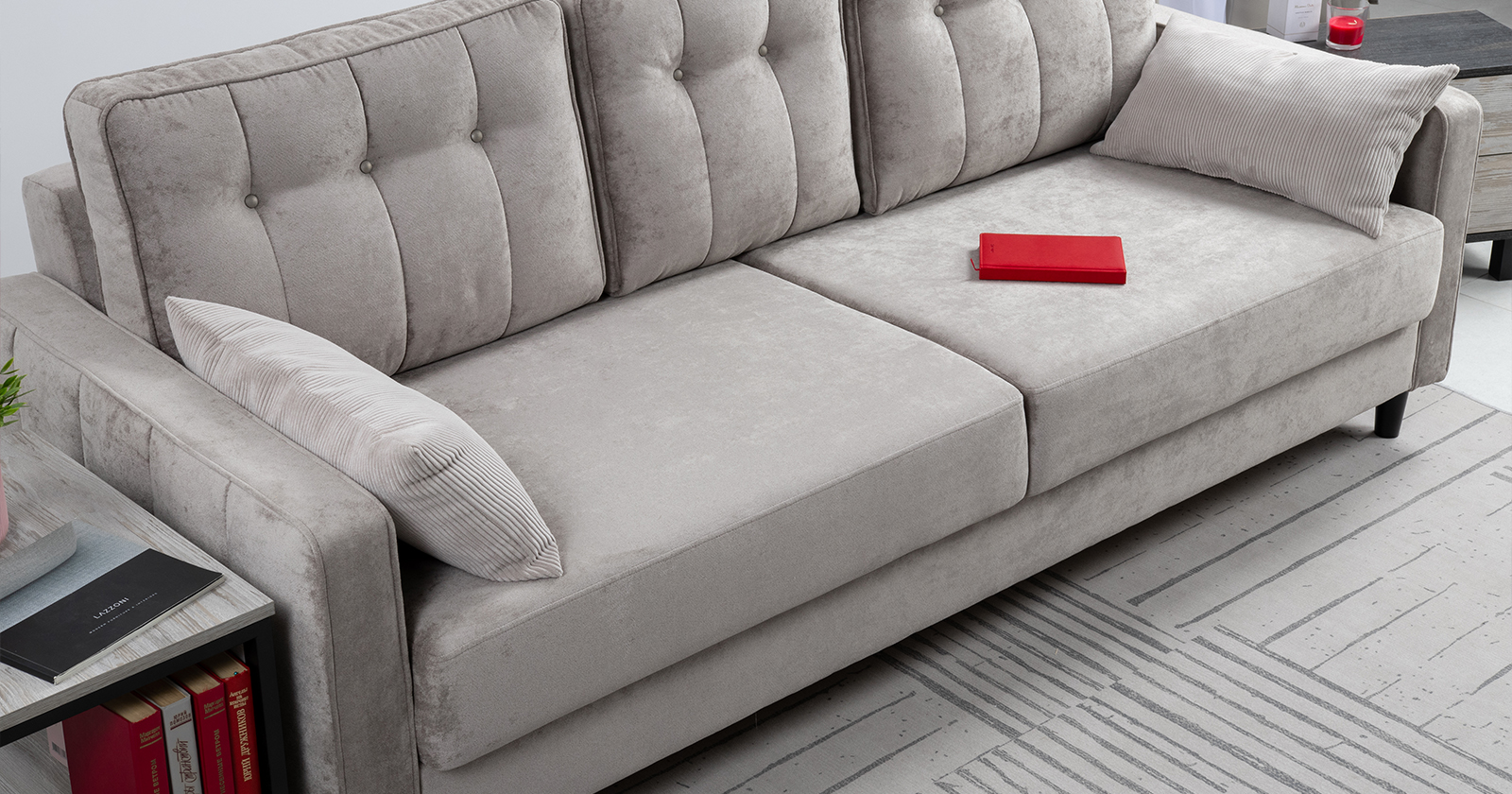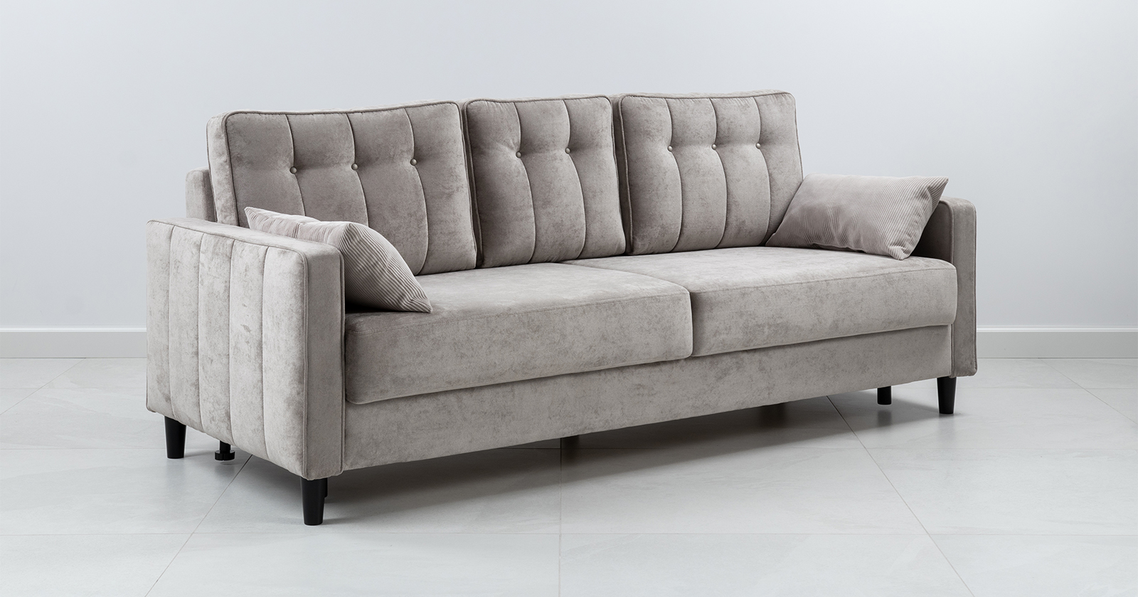 Диван-кровать прямой Арно ТД 565 велюр Лаки 04 песочный, Vertical 910 молочно-серый