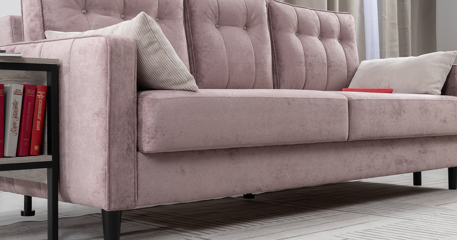 Диван-кровать прямой Арно ТД 567 велюр Лаки 17 пепел розы, Vertical 910 молочно-серый