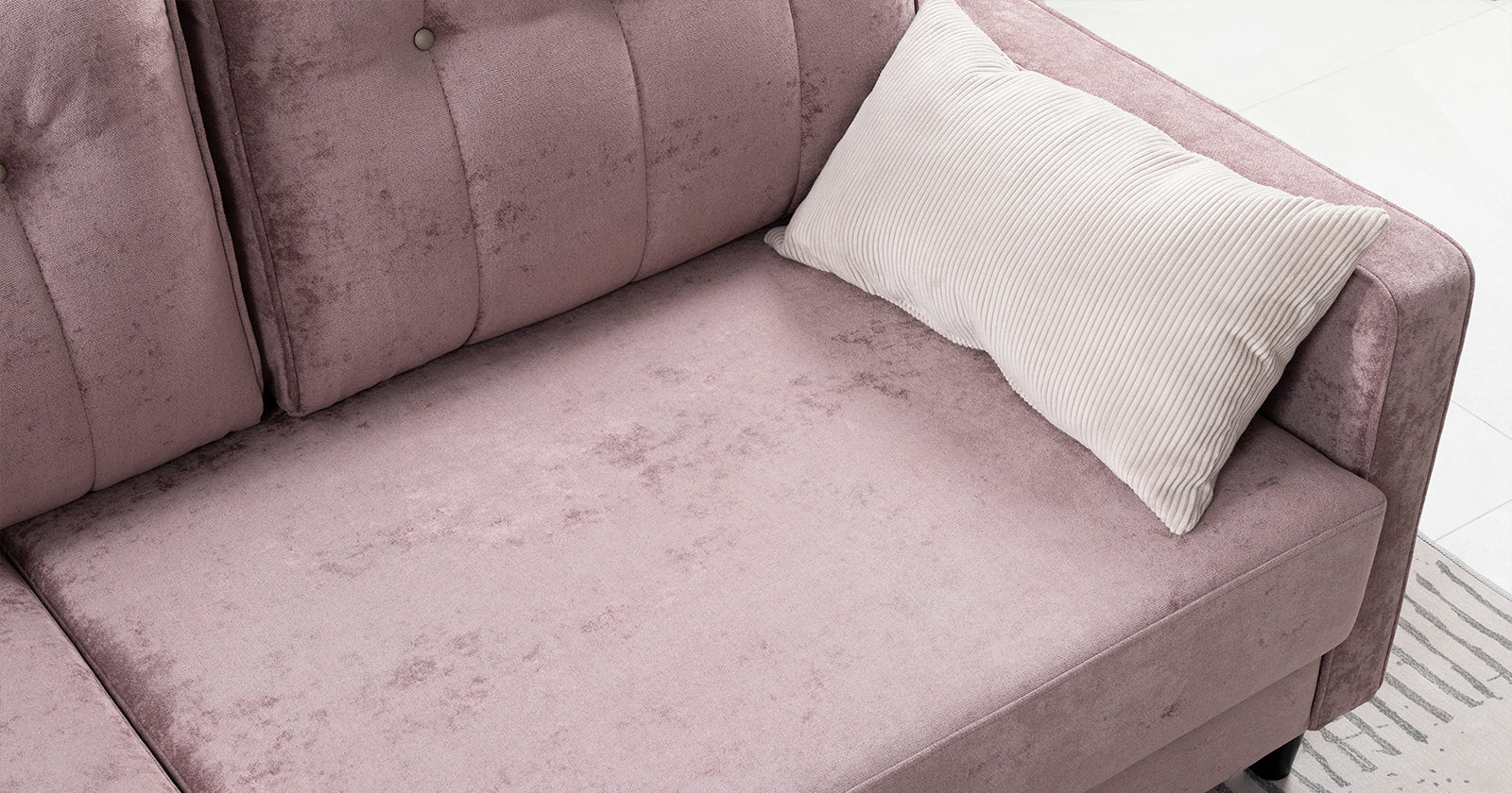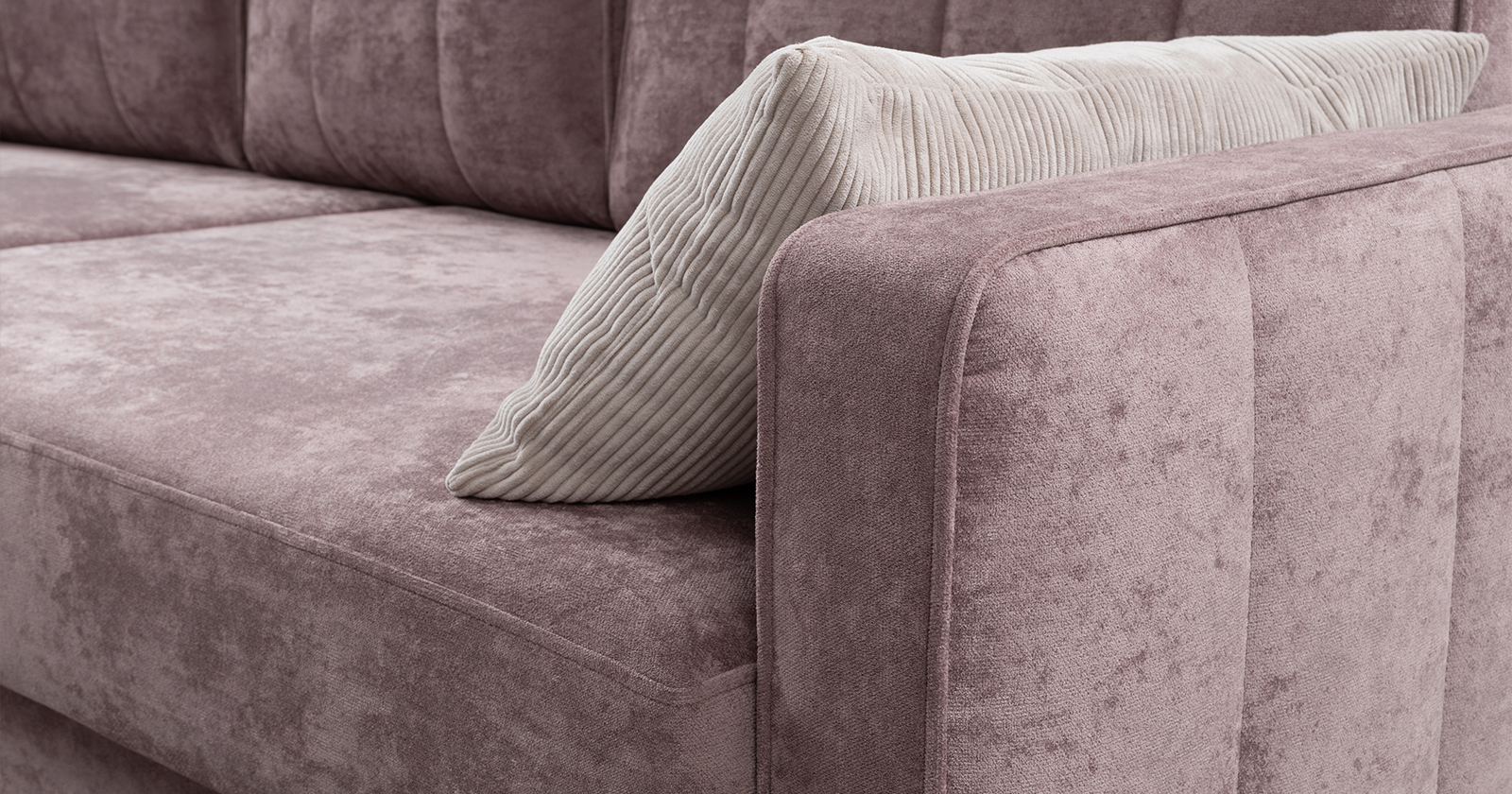 Диван-кровать угловой Арно ТД 567 велюр Лаки 17 пепел розы, Vertical 910 молочно-серый, сборка на любую сторону