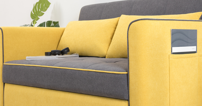 Бакстер – компактный мягкий 2-ух местный диванчик, который раскладывается вперед. Он обладает надежным мех-м трансформации, имеет ровное и широкое спальное место – 1220 мм. У дивана нет бельевого ящика. Спинка Бакстера имеет 3 положения: сидя, релакс, лежа. Удобно отдыхать днем, читать, смотреть ТВ. Диван безопасен для детей, имеет мягкие подлокотники, комфортную посадку и кармашки на подлокотниках. Приспинные подушки – двустронние: яркие или в цвет сиденья. У дивана объемная стежка на сиденье и спинке. Задняя стенка выполнена в основной ткани, чехлы на молнии.