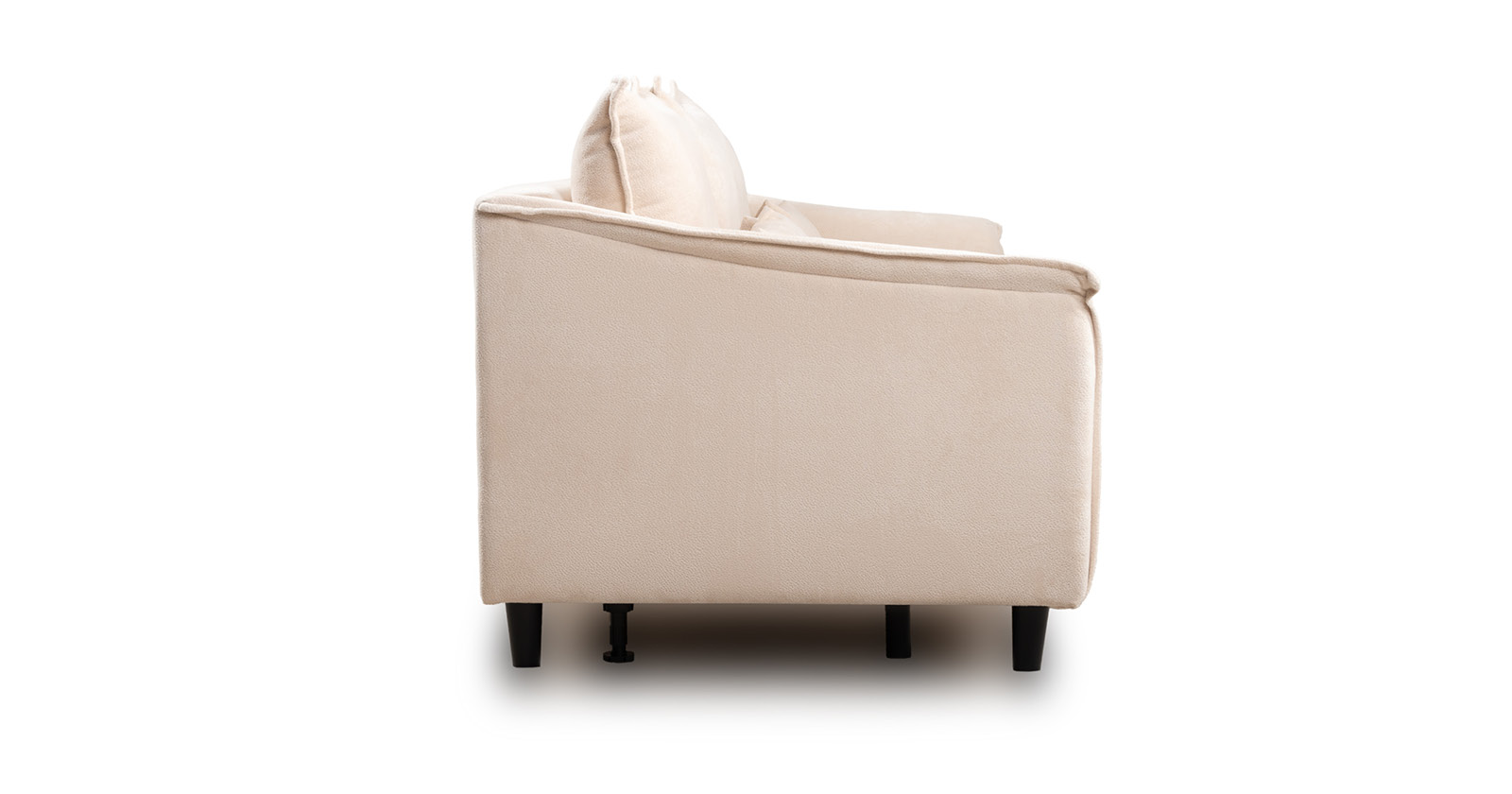 Спинка с тремя приспинными подушками. Две подушки трапецивидной формы, центральная квадратной формы на молнии, по трем сторонам которых проложена отделочная строчка на 1,2 см. По контуру боковин проложен декоративный кант на 1,2 см из основной ткани. Кант проходит по центру передней части боковины, а по внутренней верхней части сборка.