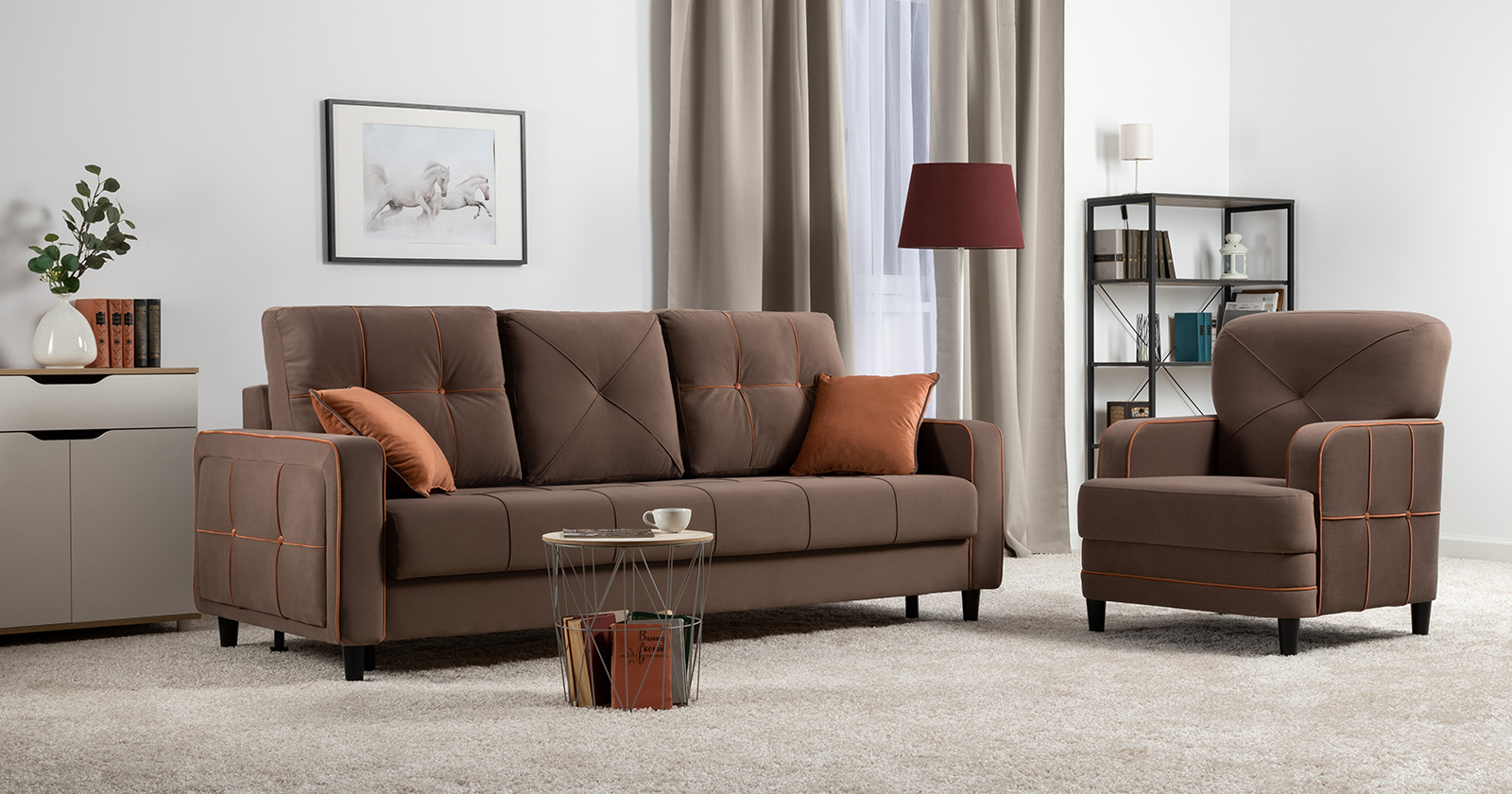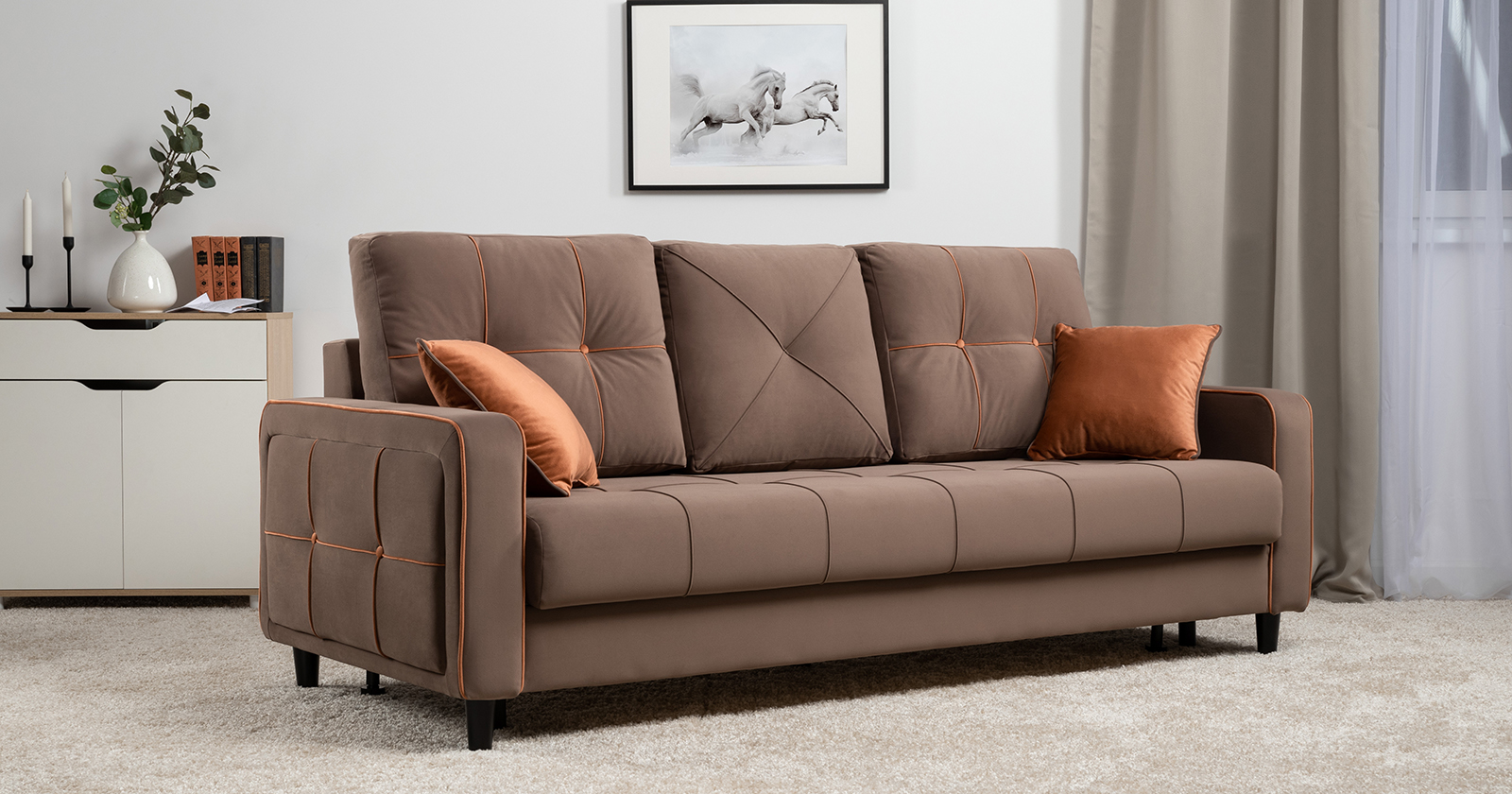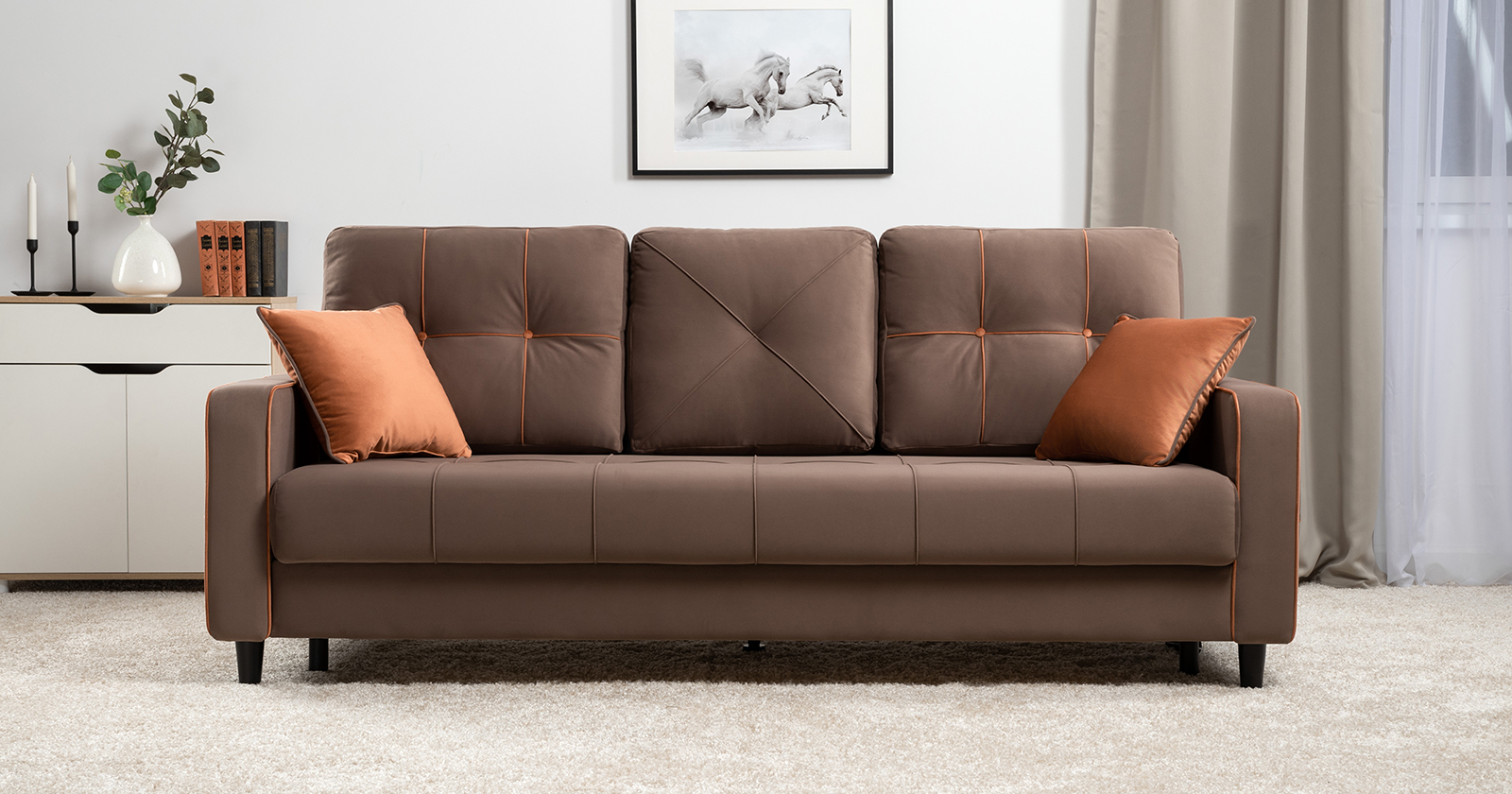 Диван-кровать прямой Черри ТД 286 велюр Irida 05 шоколадно-коричневый, Эвита терра терракотовый