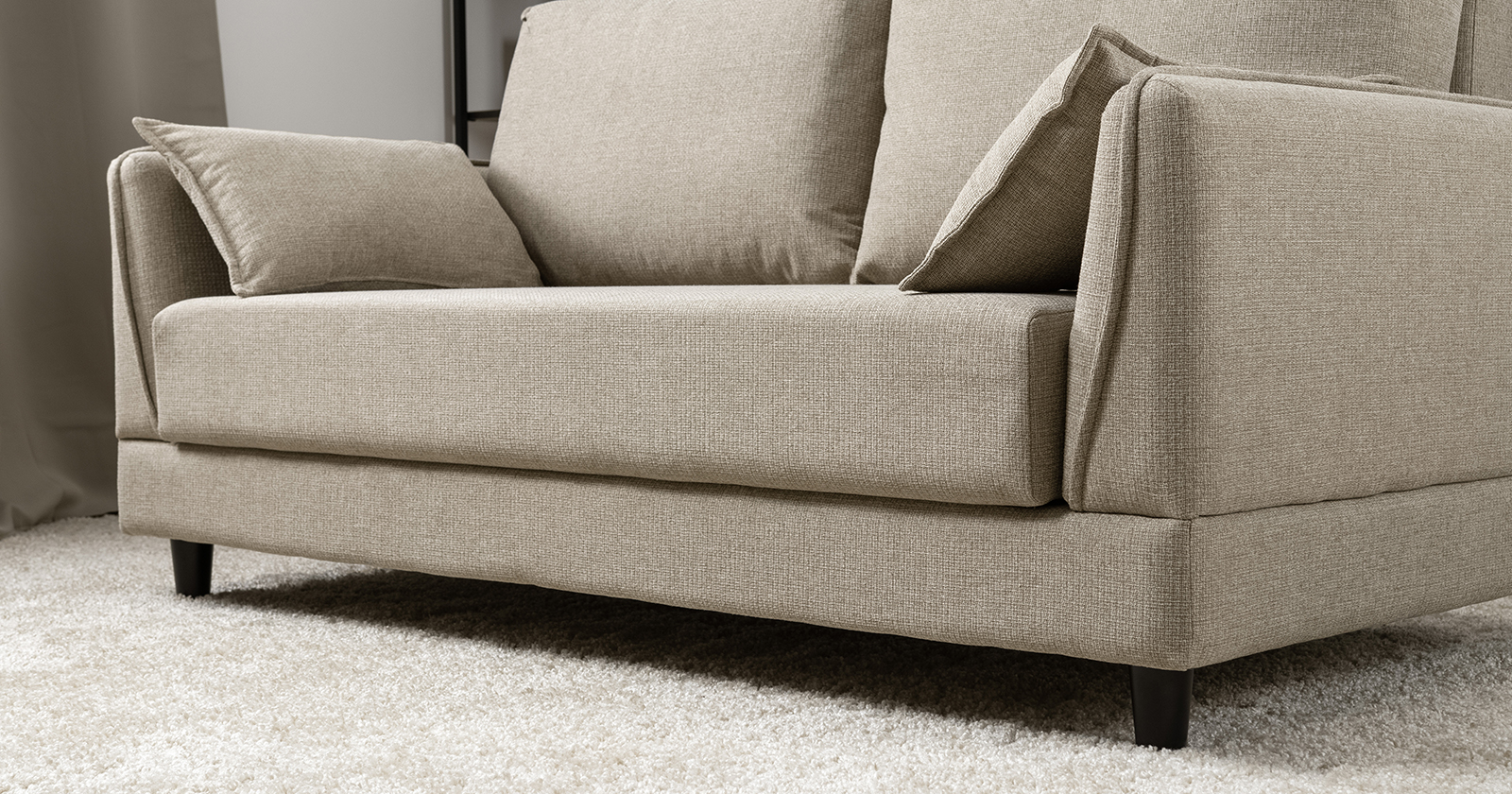 Лаконичный дизайн с деревянными ножками и узкими подлокотниками удачно дополнит не только интерьер гостиной, но и кабинета, и кухни. Кроме того, диван Макс позволяет организоввть спальное место в ограниченном пространстве.