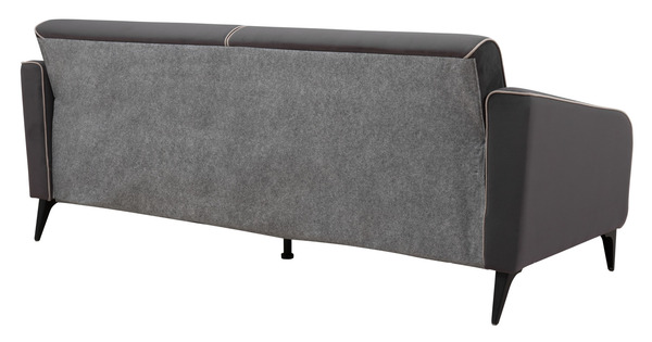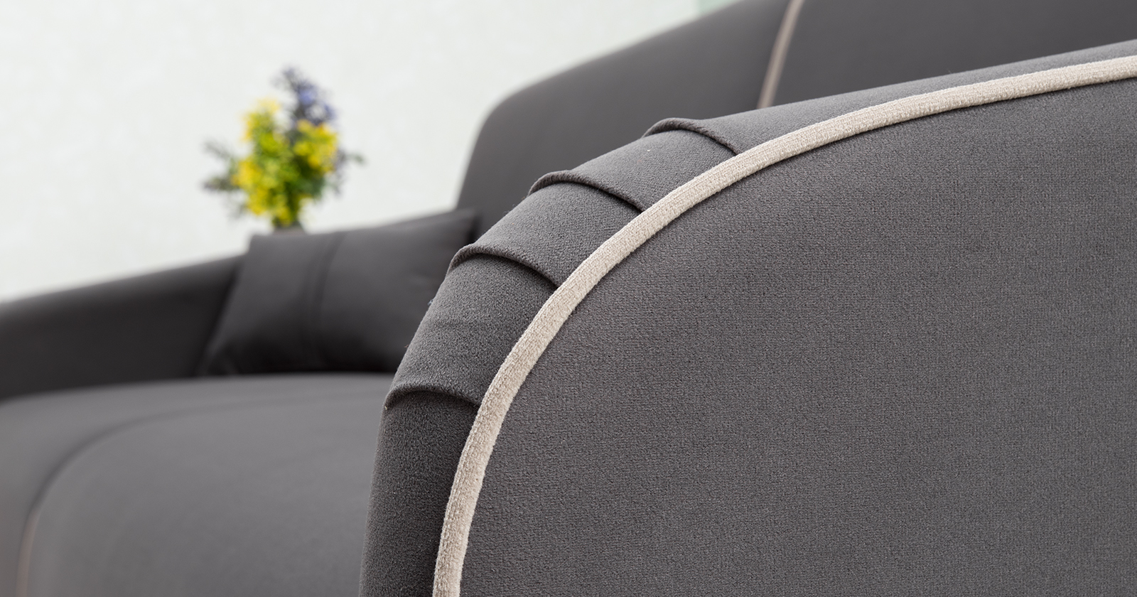 Спинка и сиденье разделяются пополам двойным кантом по центру и одинарным по краям сидения, для придания одной единой формы. Подлокотники с изгибом на лицевой стороне и мягкими закругленным углом со складками, с выраженным контрастным ровным кантом по внешнему контуру изделия и изогнутой линией канта.