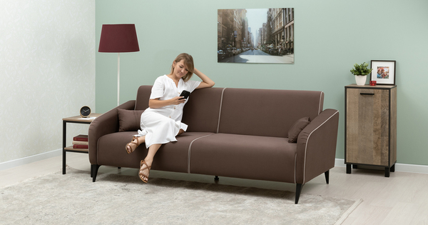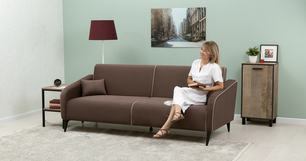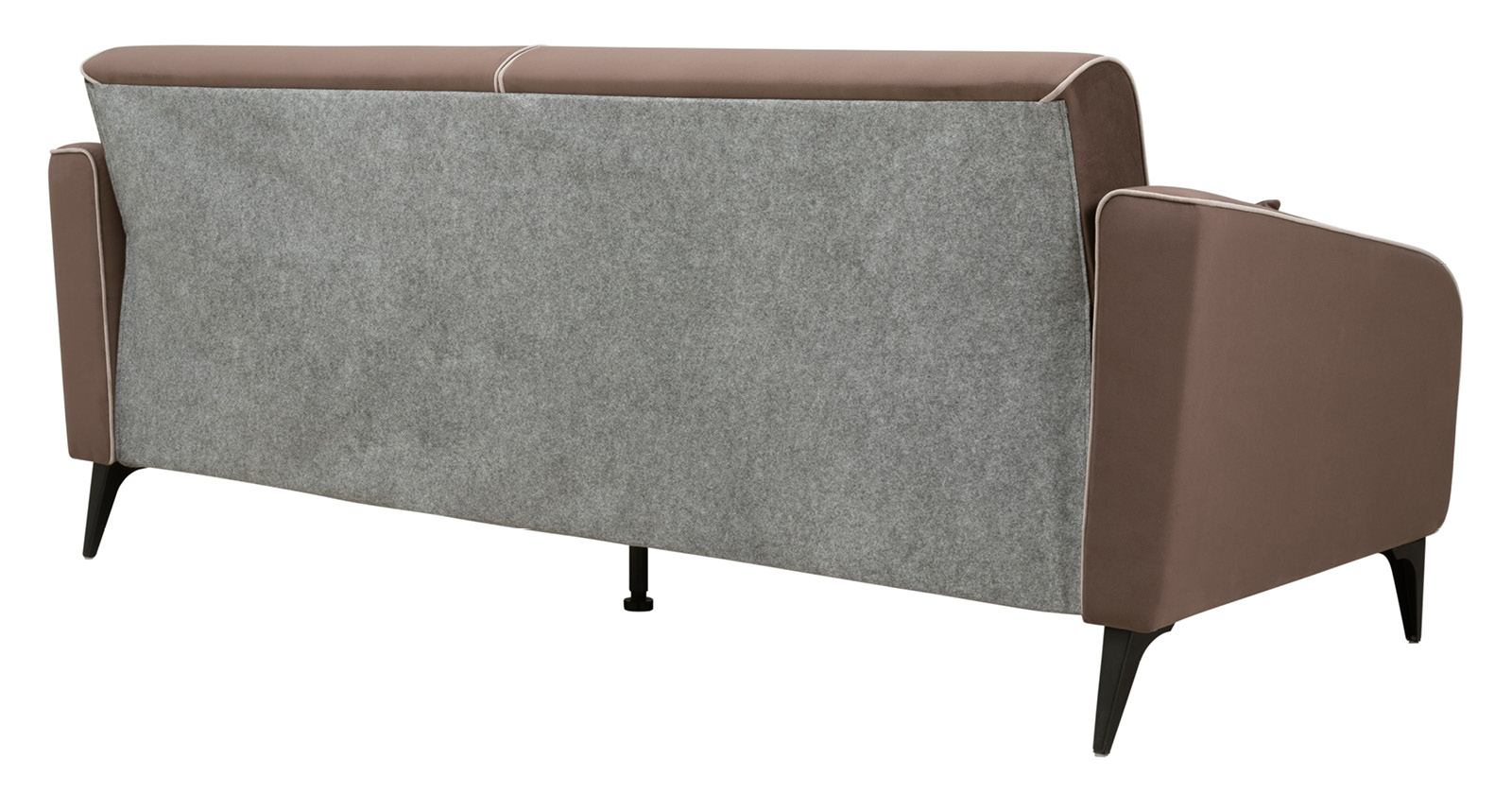 Спинка и сиденье разделяются пополам двойным кантом по центру и одинарным по краям сидения, для придания одной единой формы. Подлокотники с изгибом на лицевой стороне и мягкими закругленным углом со складками, с выраженным контрастным ровным кантом по внешнему контуру изделия и изогнутой линией канта.