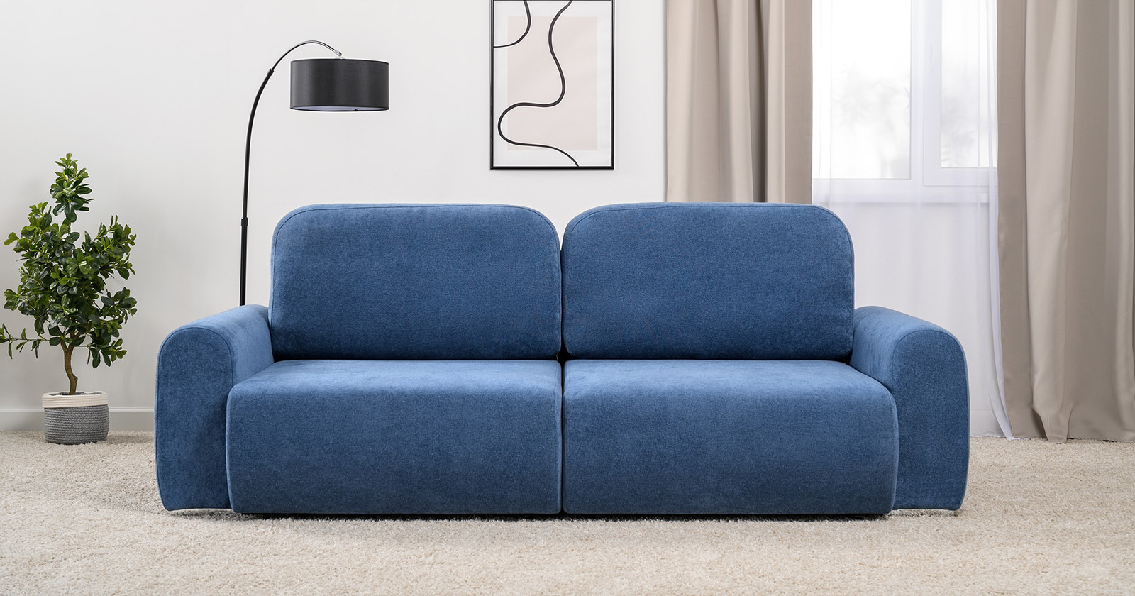 Диван-кровать прямой Тэдди 1504 композиция 1, букле Pique 009 синий, модульная система