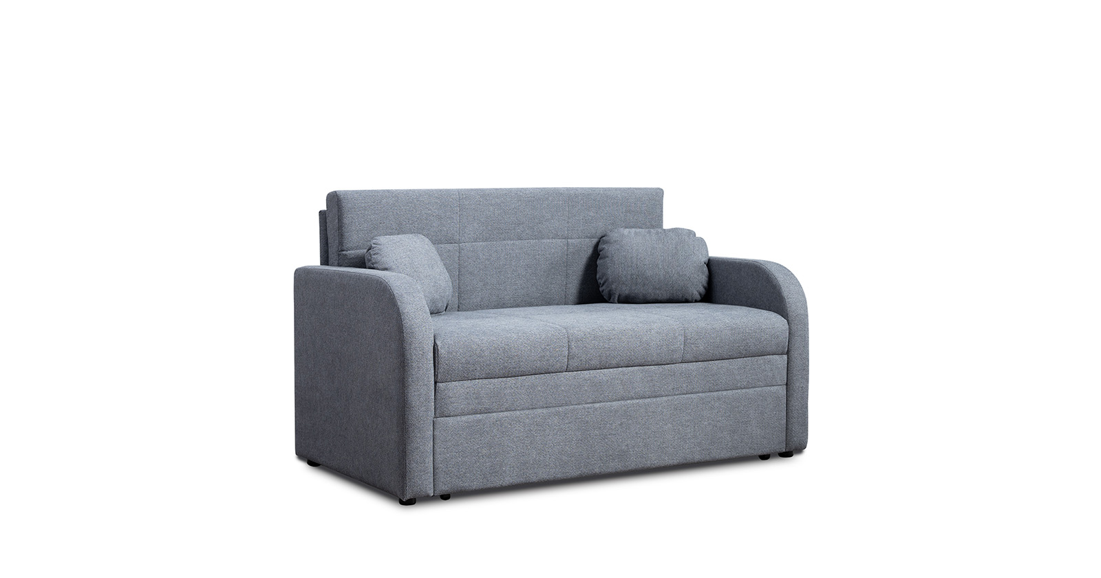 Коллекция выполнена в современном минималистичном стиле с мягкой обивкой из износостойкой ткани и декоративной стежкой, подчеркивающей геометрию форм. Механизм трансформации обеспечивает дополнительное спальное место, делая мебель не только эстетичной, но и максимально функциональной для небольших пространств.