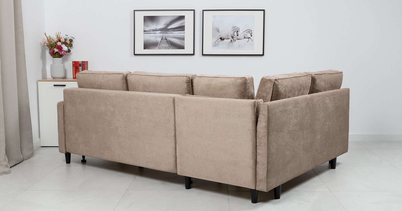 Диван-кровать угловой Арно ТД 565 велюр Лаки 04 песочный, Vertical 910 молочно-серый, сборка на любую сторону