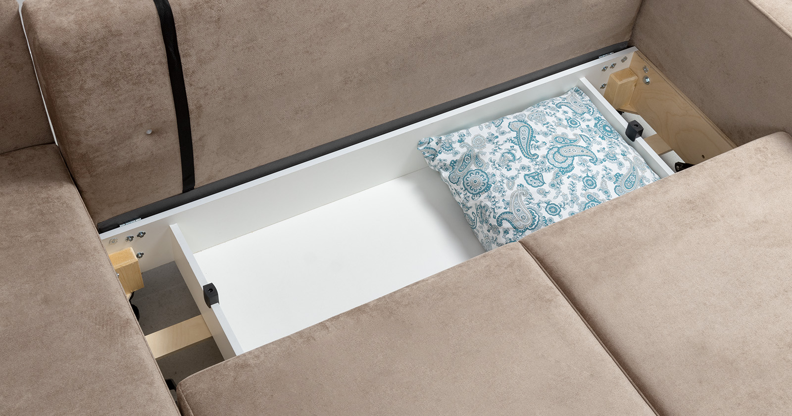 в диванной части с перегородкой по центру, размер одного отделения Д 82 х Г 67,5 х В 15 см