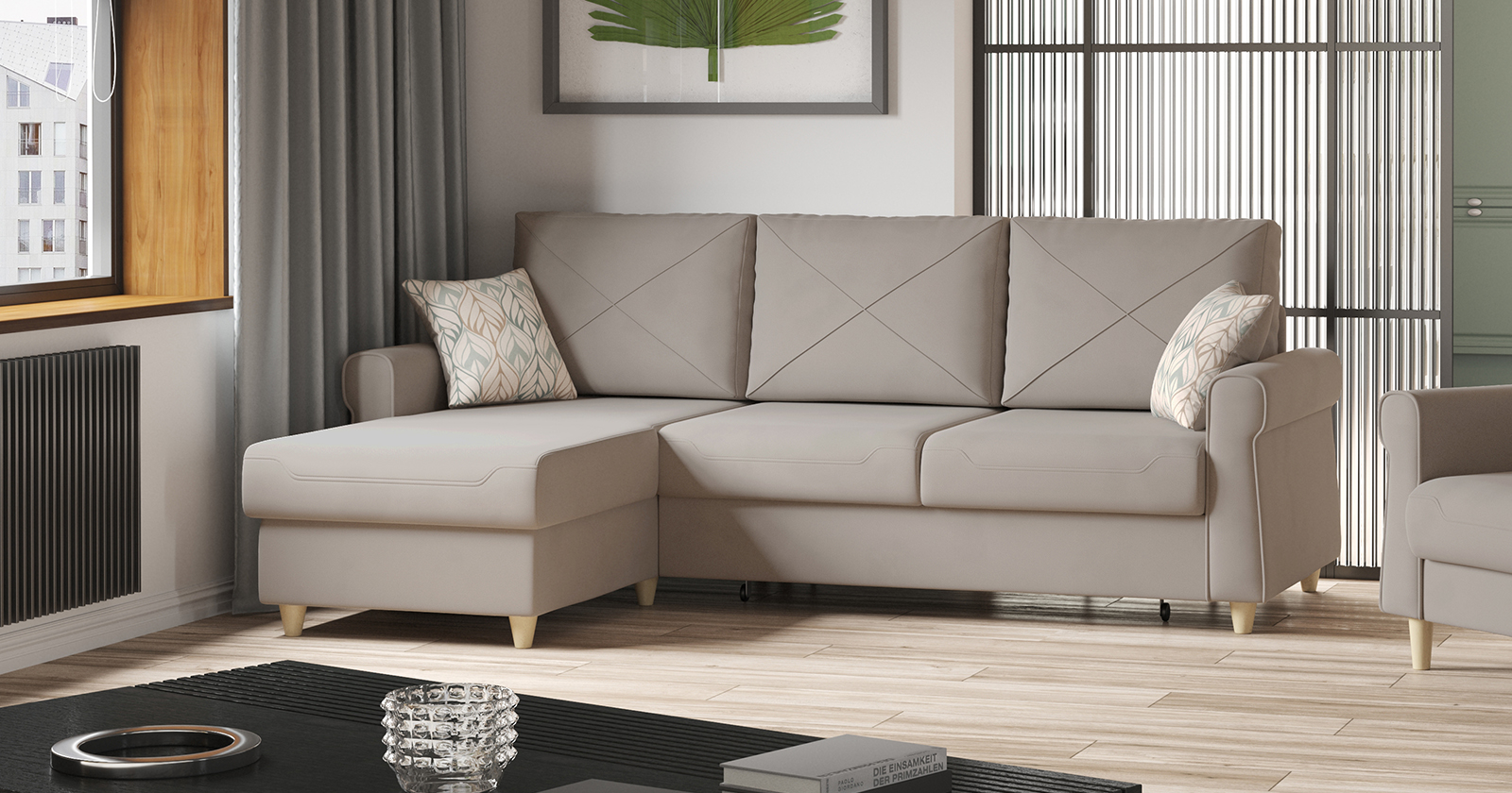 Френсис диван-кровать угловой ТД 262 велюр Амиго крем серо-бежевый