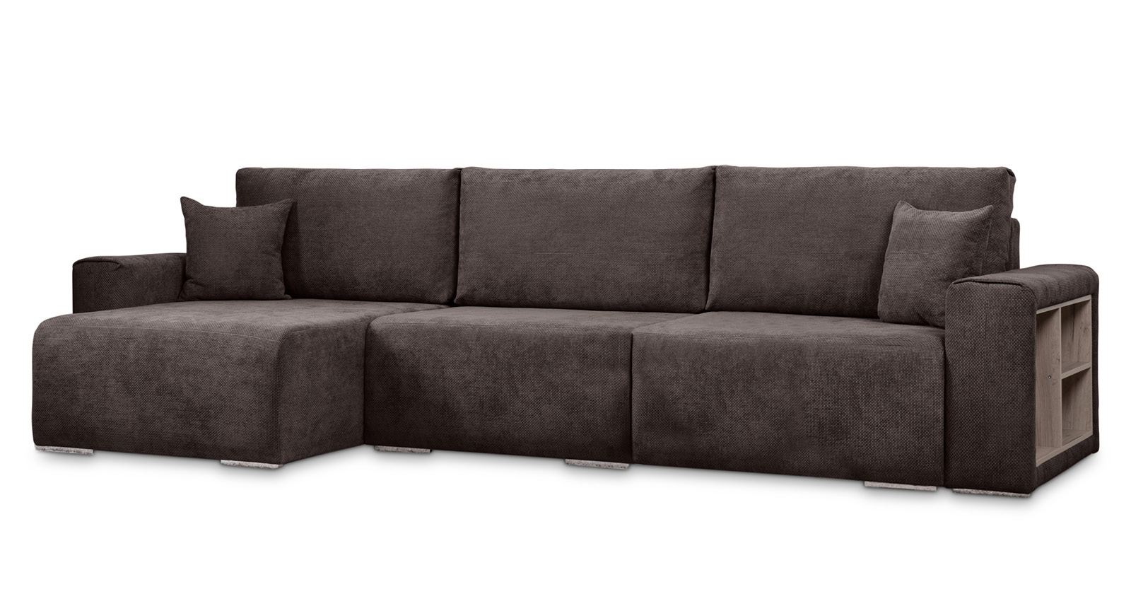 Диван-кровать угловой Оксфорд 711 композиция 1, шенилл Muza 06 темно-коричневый, модульная система, сборка на любую сторону