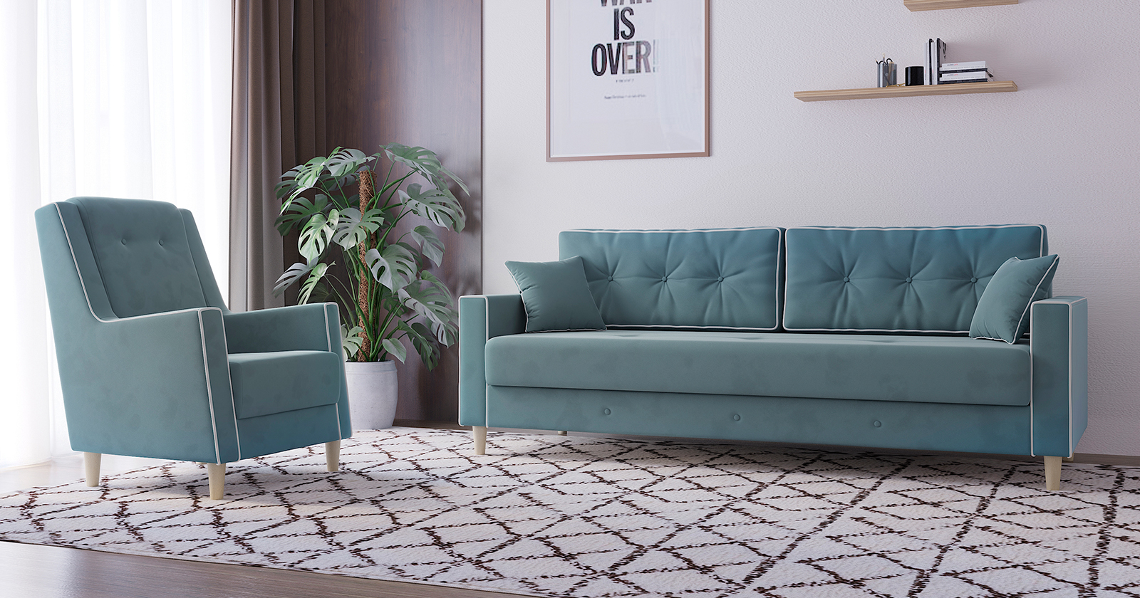 Диван прямой Айрин ТД 324 велюр светлый бирюзовый