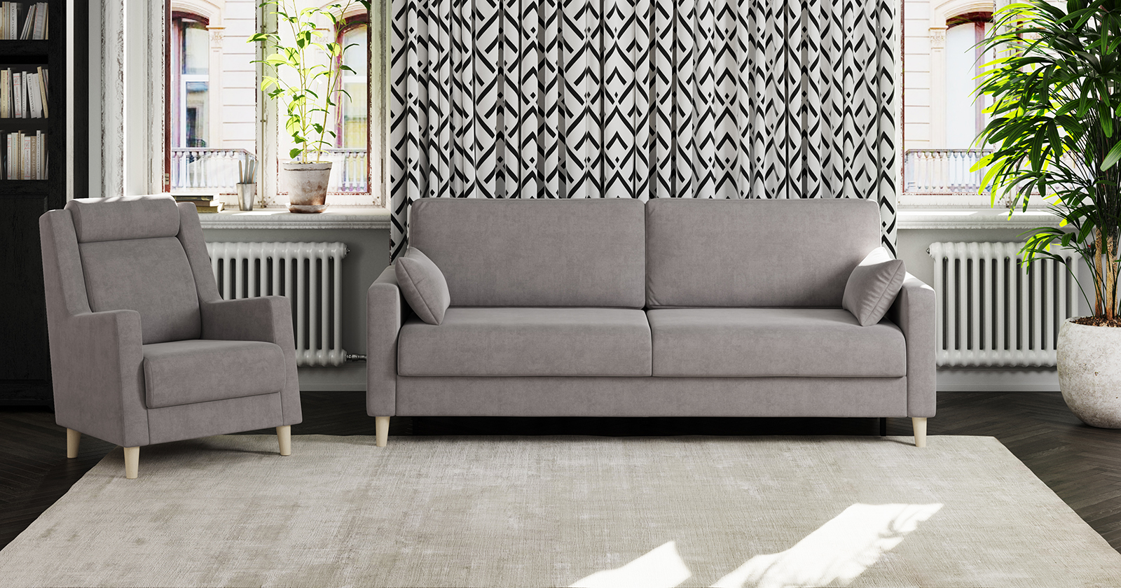 - глубокая мягкая посадка диванов и кресла