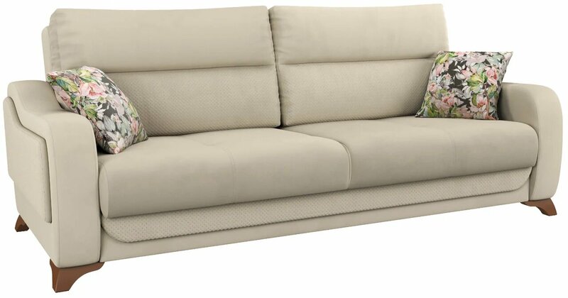 Диван прямой Фрея ТД 193 велюр карамельный, розово-серые цветы