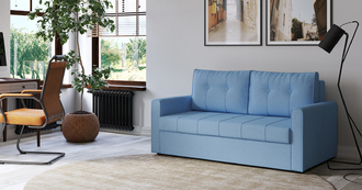 Диван-кровать «Лео» – это компактный диван днем и комфортная двуспальная кровать ночью. Полноценное ровное спальное место для двоих при минимальных габаритах!