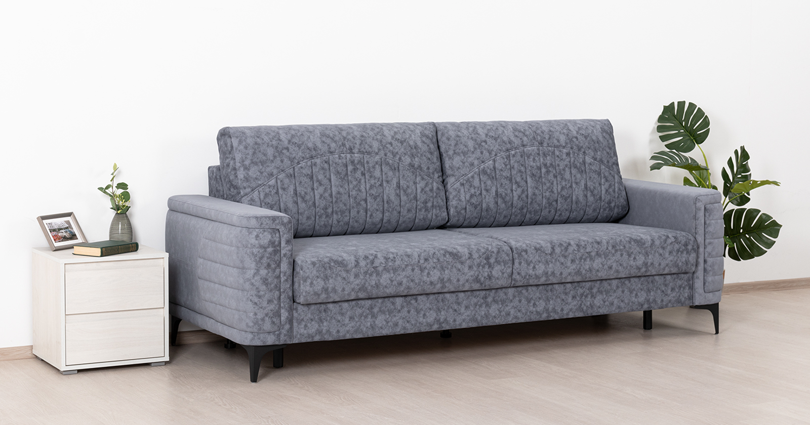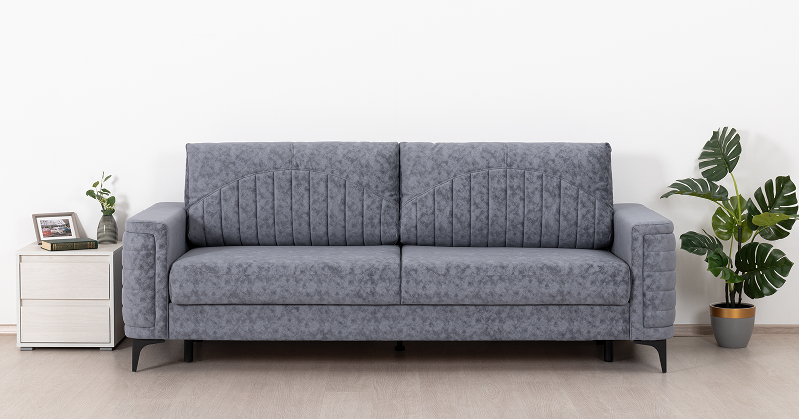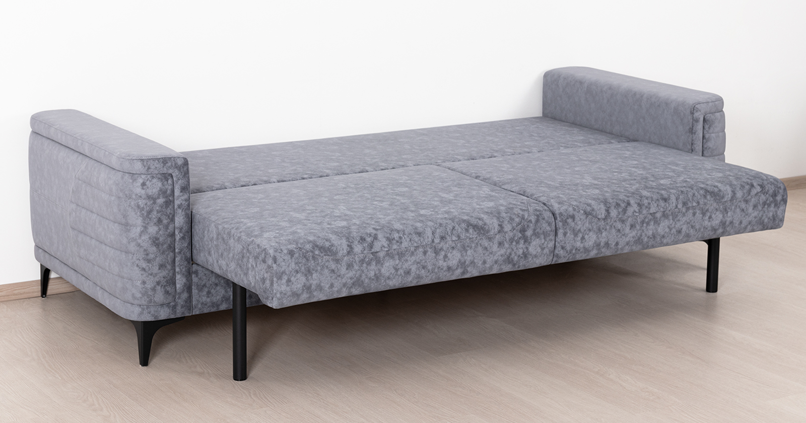 Современная еврокнижка с ярким дизайном и надежным механизмом трансформации на каждый день. Удобное место отдыха днем и ровное комфортное спальное место для двух человек ночью. Можно дополнить креслом Руди.
