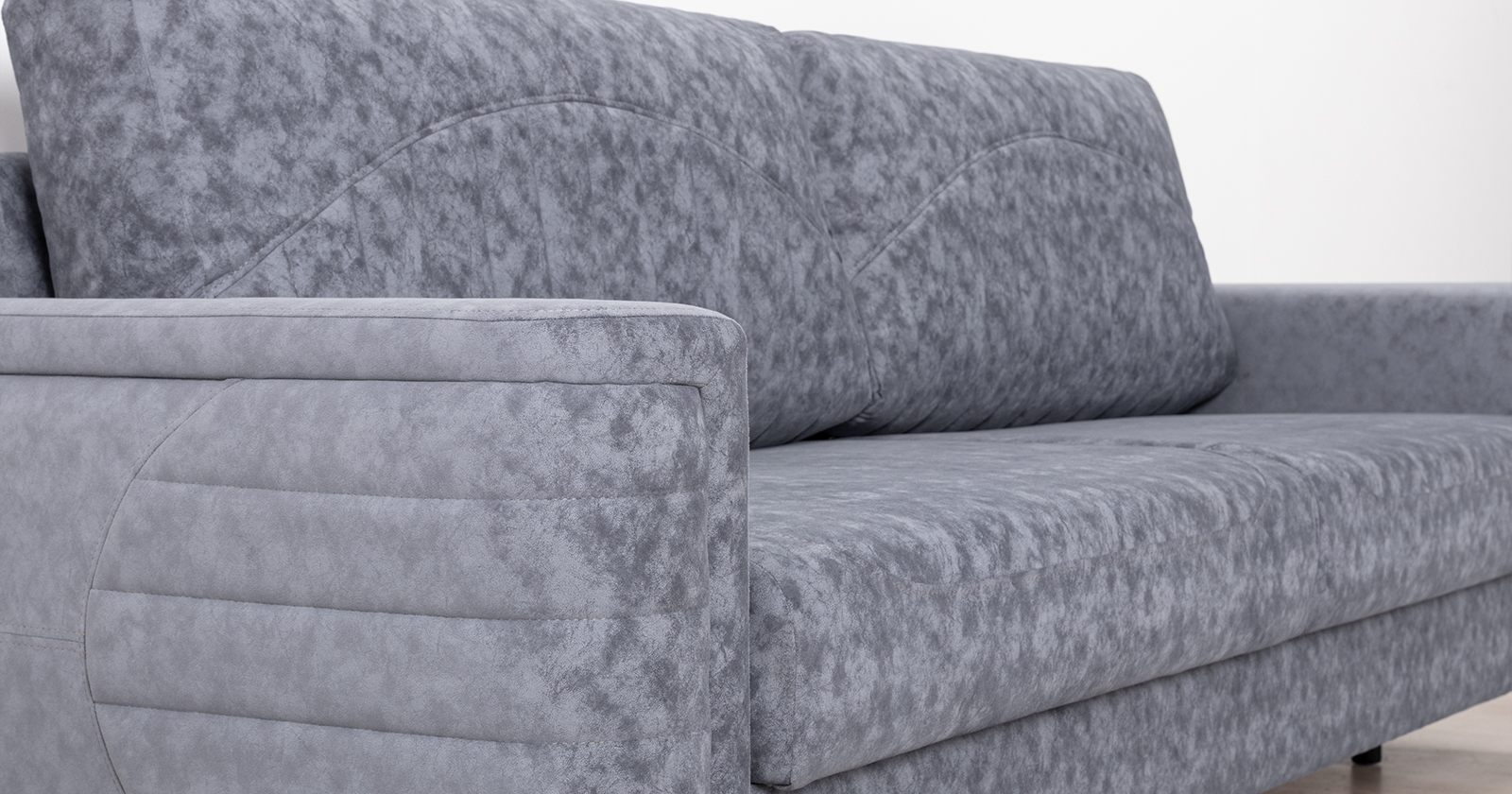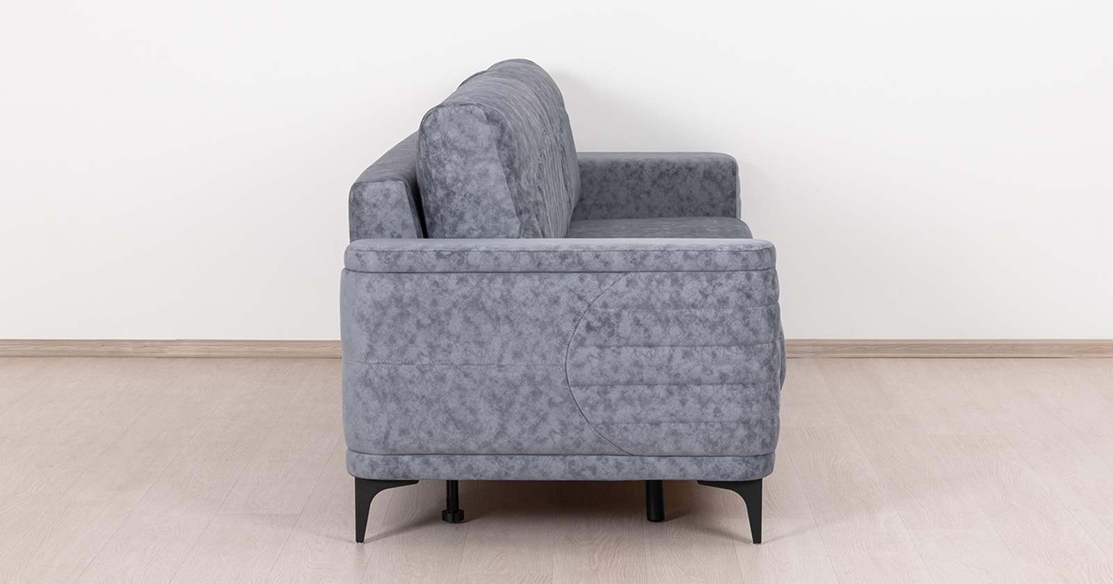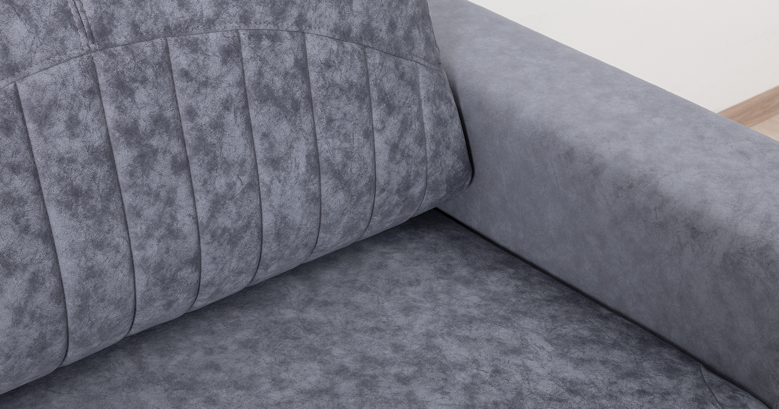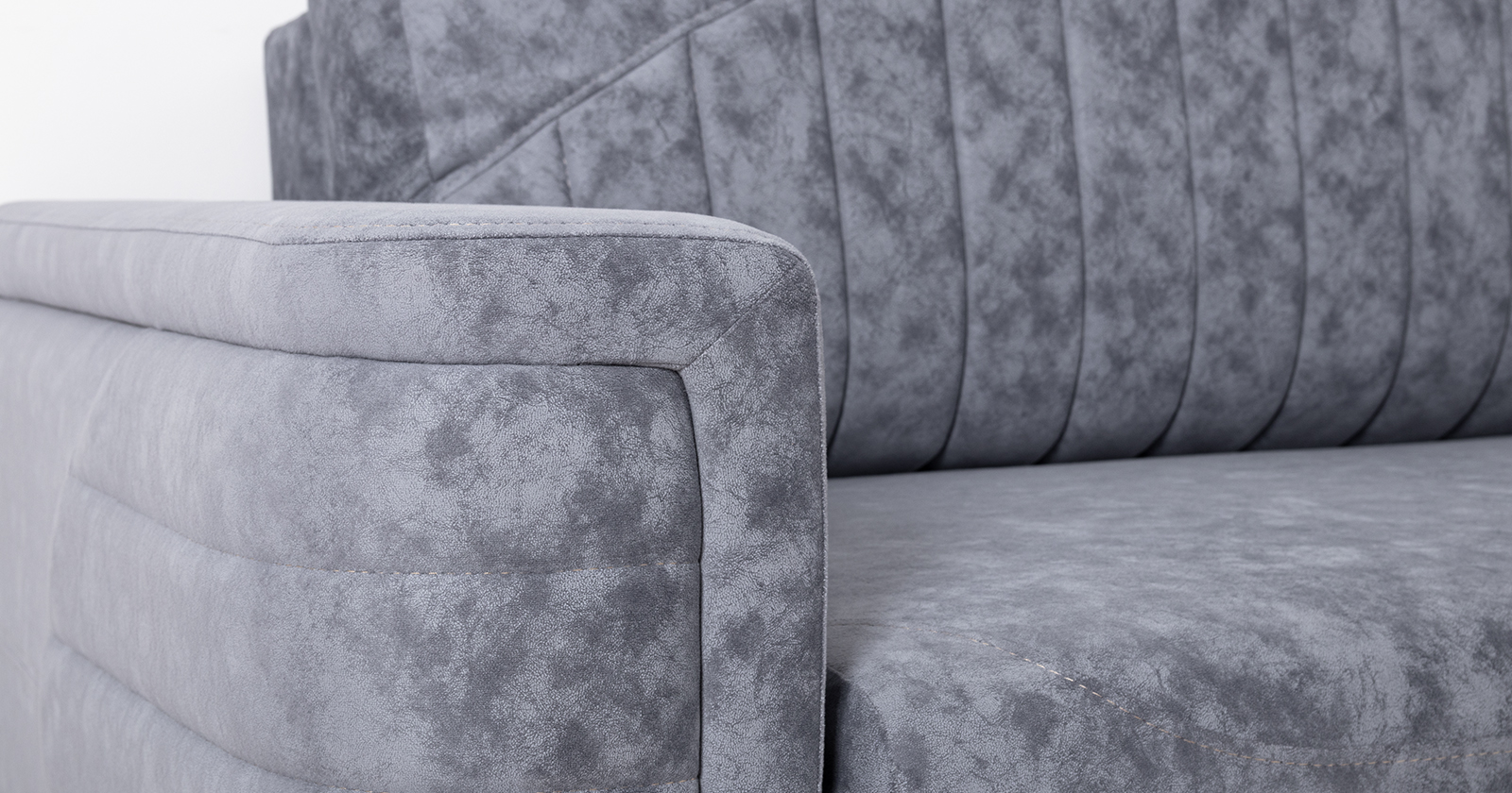 На подлокотниках и приспинных подушках фигурная стёжка. На внешних частях подлокотника стёжка с 5-ю горизонтальными строчками. На подушках дивана (2 шт.) фигурная стёжка с 11-ю вертикальными строчками.