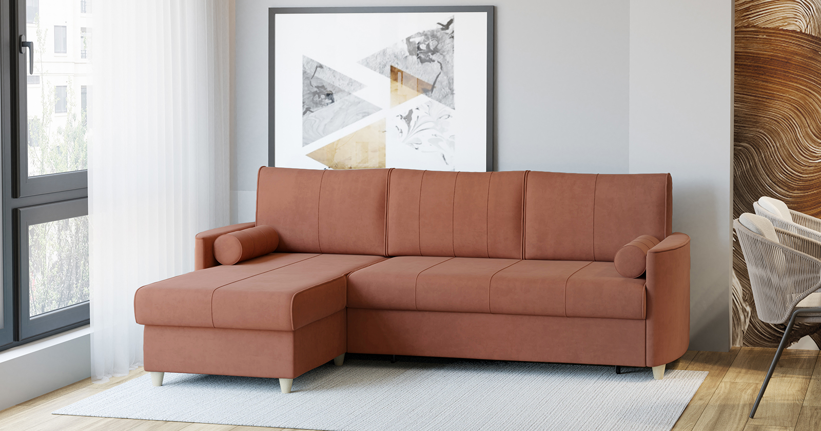Диван угловой Лора ТД 332 велюр кирпичный