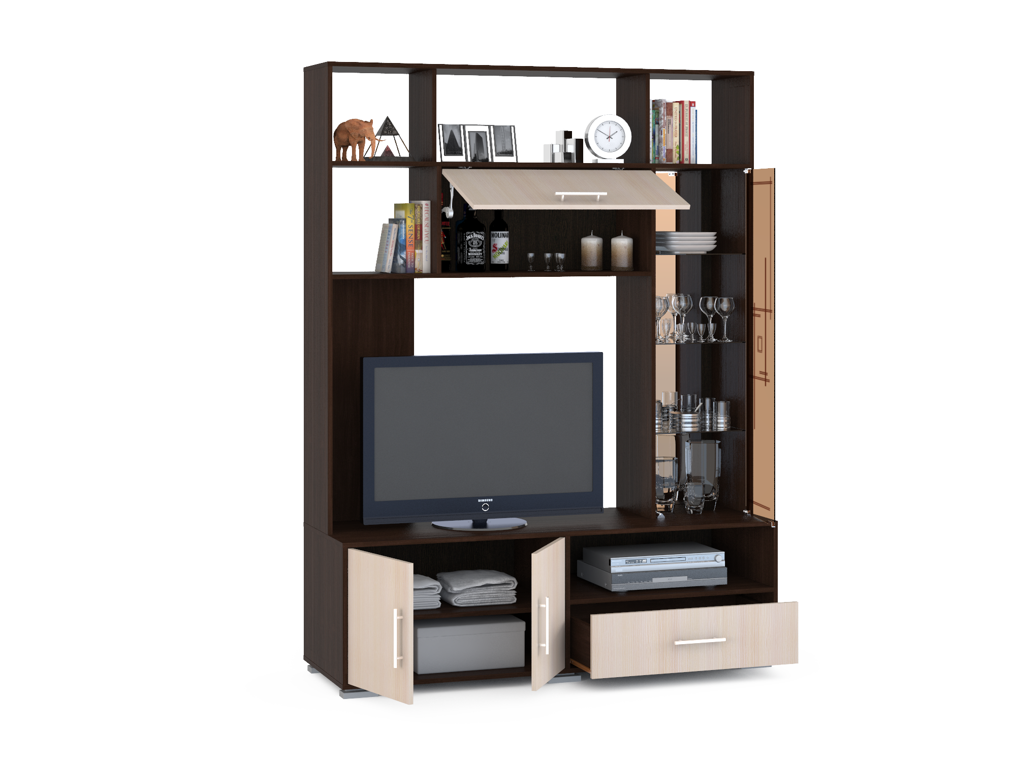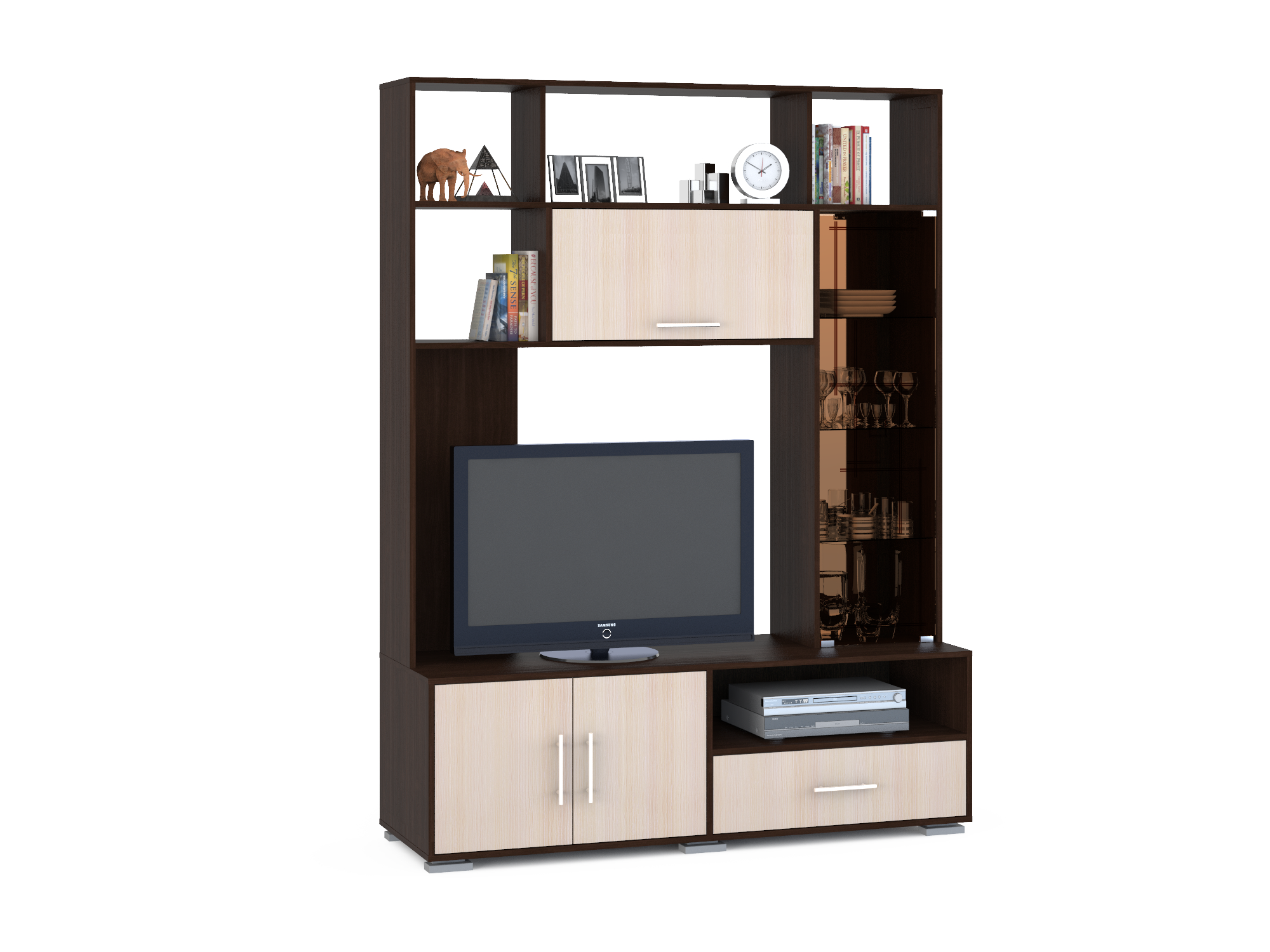 Стенка «Домино 7» отлично впишется в интерьер даже небольшой квартиры, решив при этом вопрос размещения телевизора, видео аппаратуры, посуды, книг, фотографий и многих других мелочей, без которых невозможно обойтись.