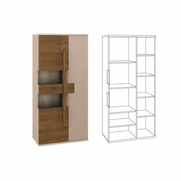Шкаф-пенал Эвора 300 вяз либерти светлый, какао горизонт ПВХ, мокко глянец ПВХ