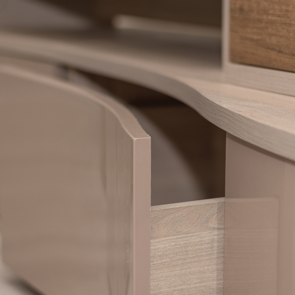 Если вы идете в ногу со временем и привыкли к оригинальности во всем, то вам просто необходимо обратить внимание на мебель коллекции Эвора. Своеобразные ручки, строгие геометрические формы корпуса в сочетании с плавностью линий гнутых фасадов – всё это подчеркнет респектабельность вашего дома и ваш безупречный вкус. Контрастное сочетание цветов фасадов фактурного дерева и глянцевого однотонника придают этой мебели легкую нотку этнического стиля, такого популярного в последнее время.