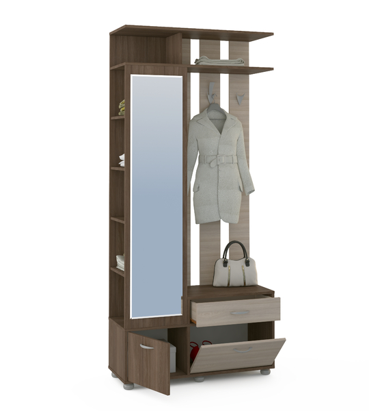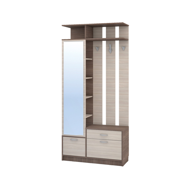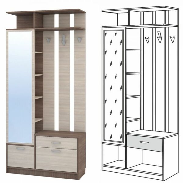 Прихожая Глория в цвете Ясень шимо отлично обустроит Вашу прихожую комнату. Полочки, которые спрятаны за зеркалом, разместят все необходимые вещи, поддерживая при этом безупречный порядок.