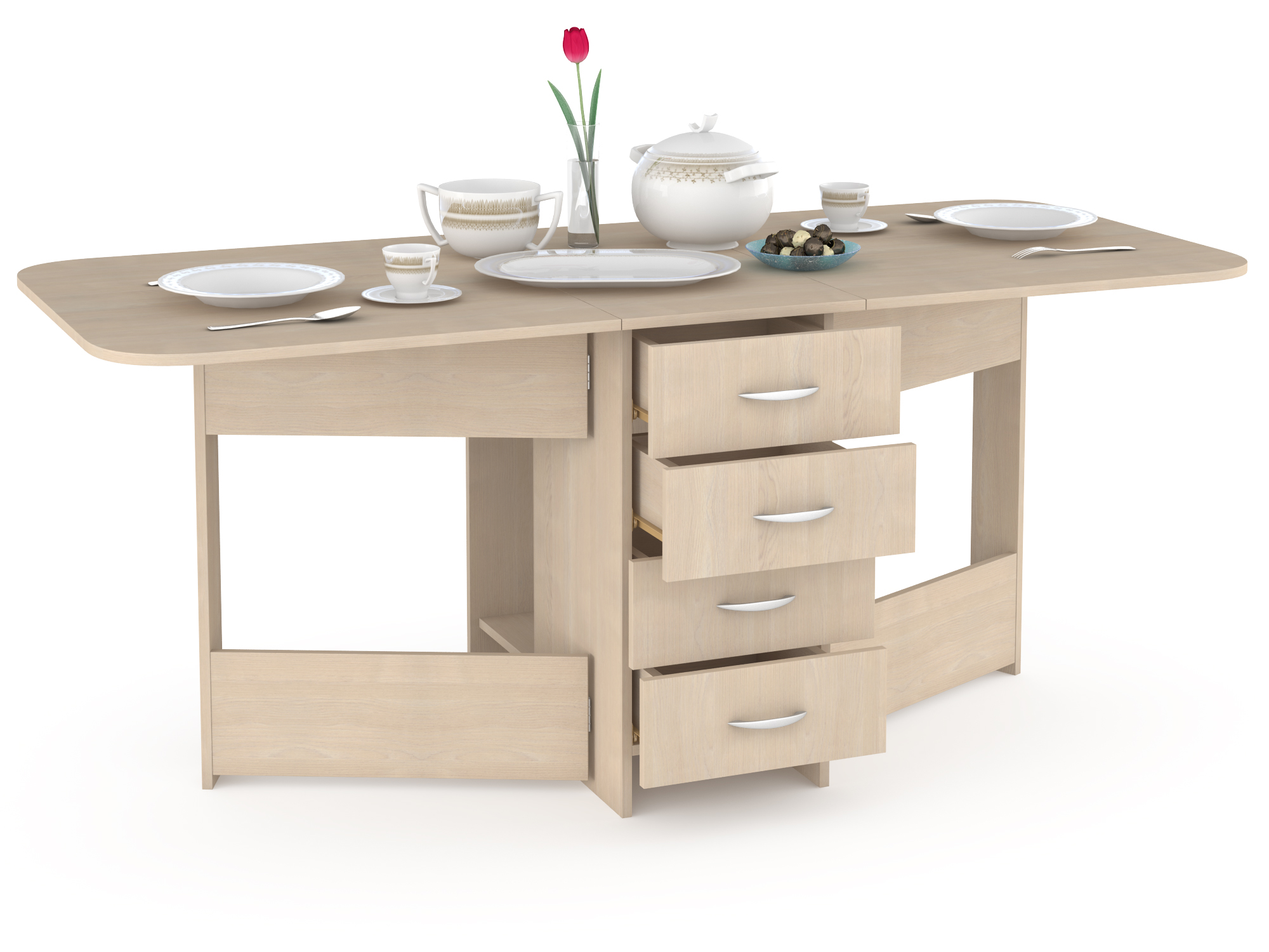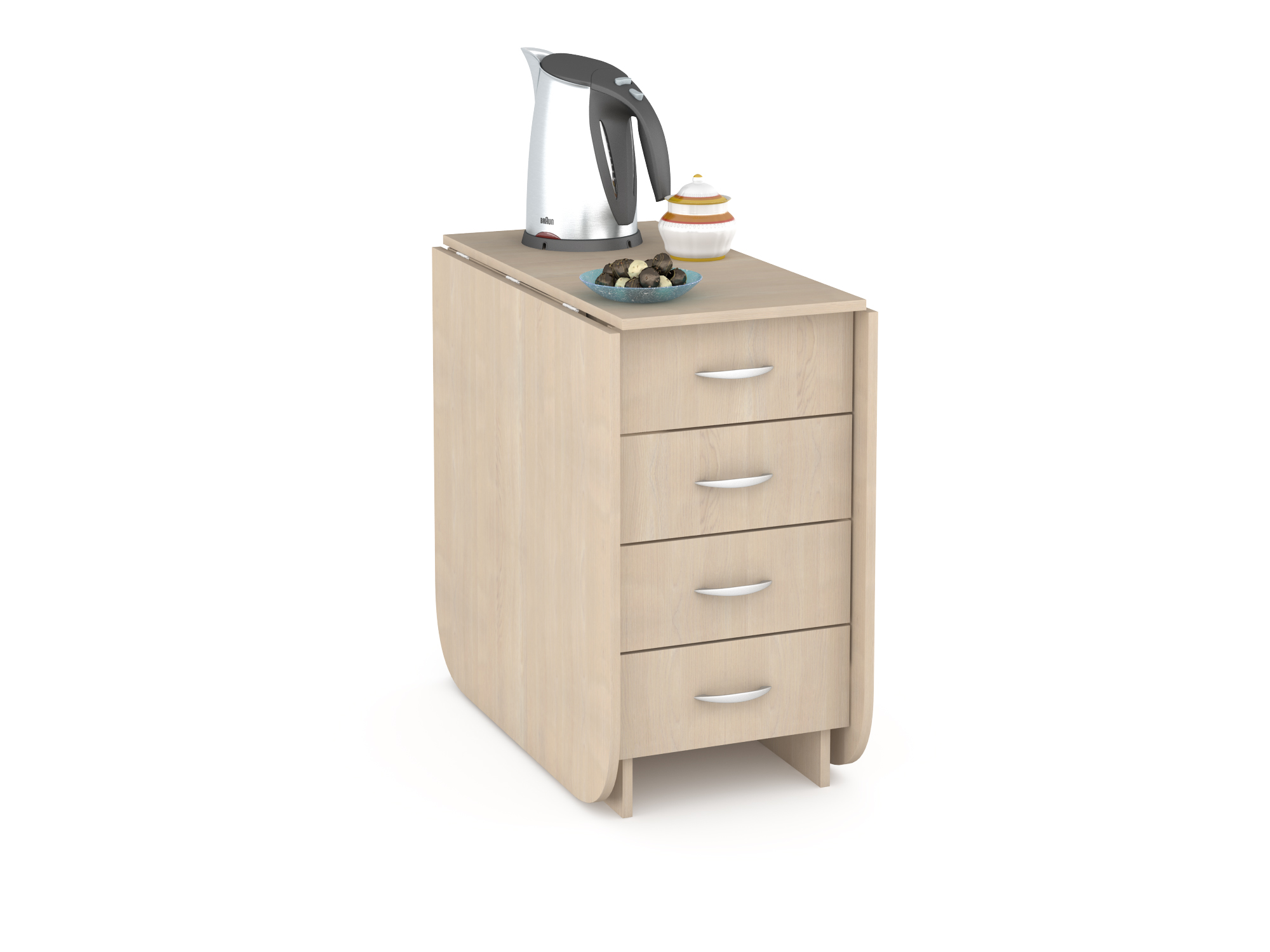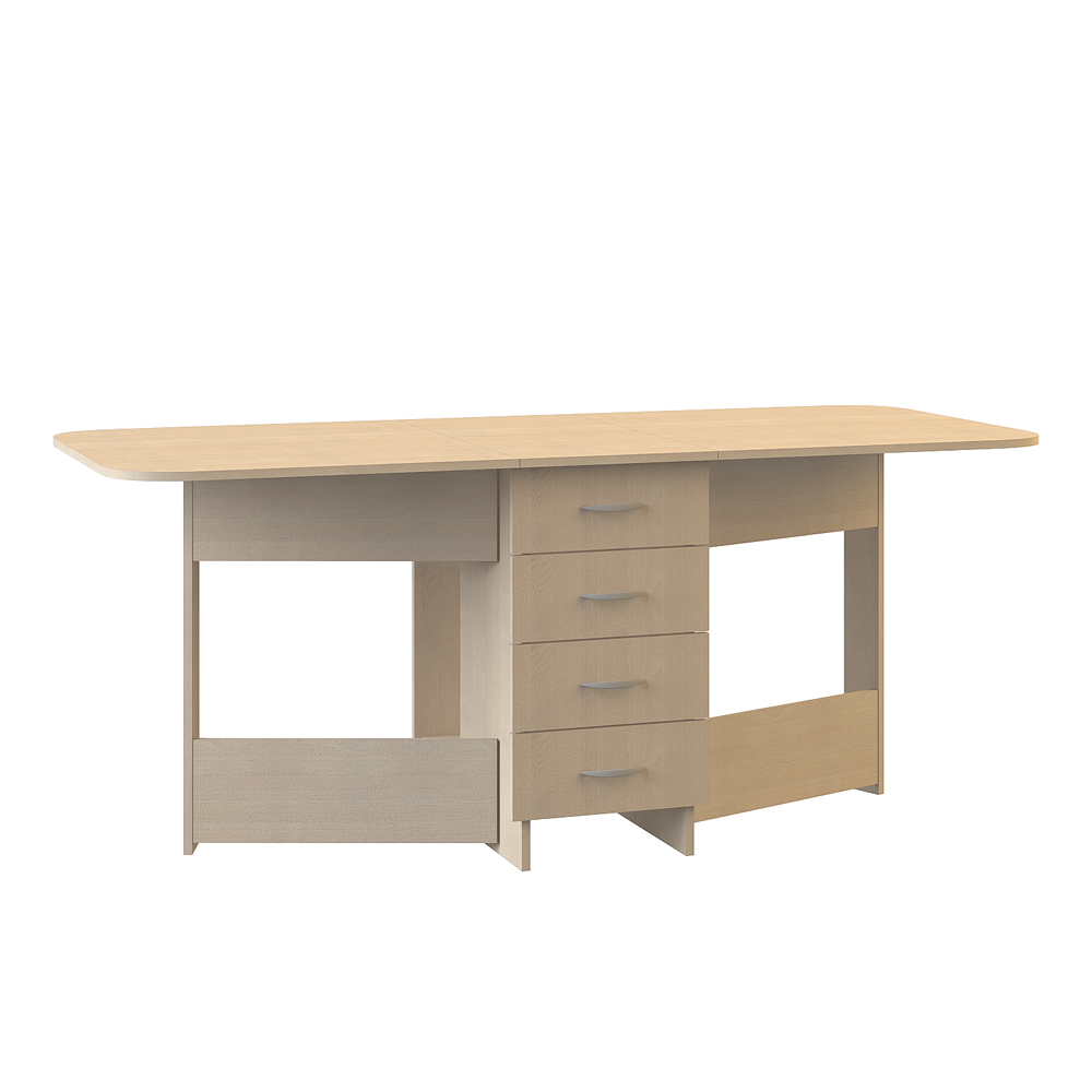 Четыре выдвижных ящика для хранения на роликовых направляющих, скругленные углы на столешницах, пластиковые ручки, размеры в сложенном виде (см): 42,4 х 78 х 75,3, размеры в разложенном виде (см): 182,6 х 78 х 75,3