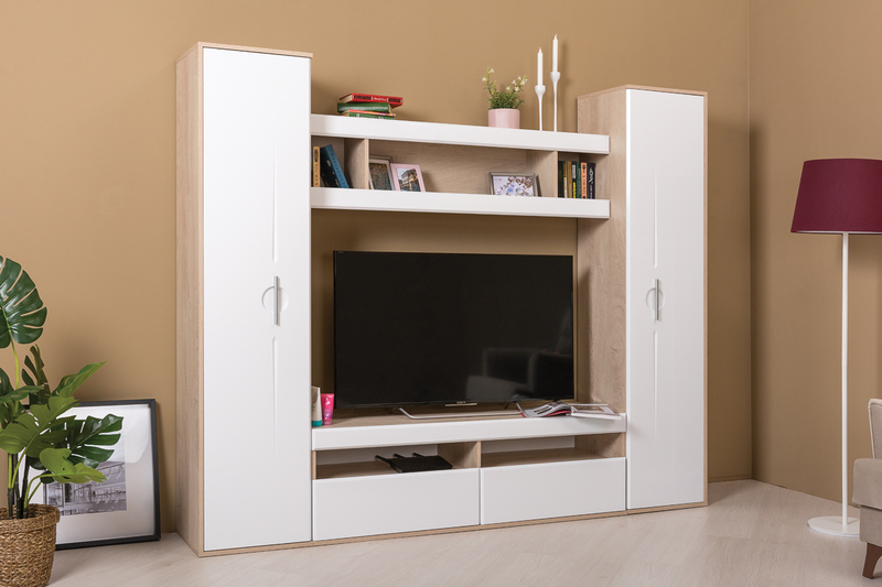 Гостиная Альба композиция 1 дуб золотой CRAFT, белый премиум, без подсветки