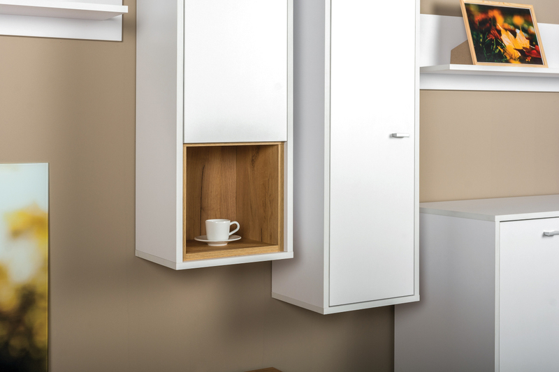 Шкаф навесной в гостиную Бэль 10.63 белый премиум, дуб золотой CRAFT