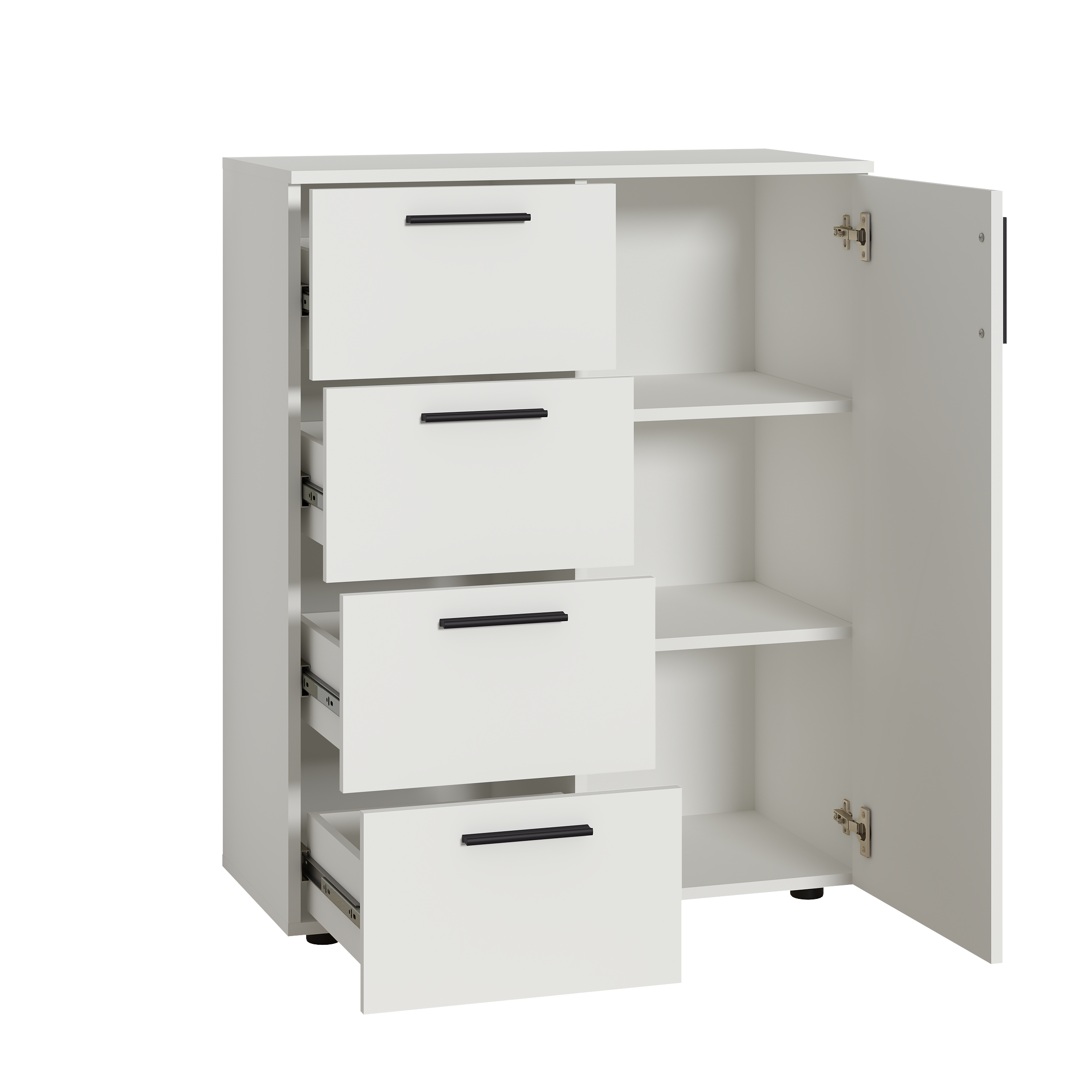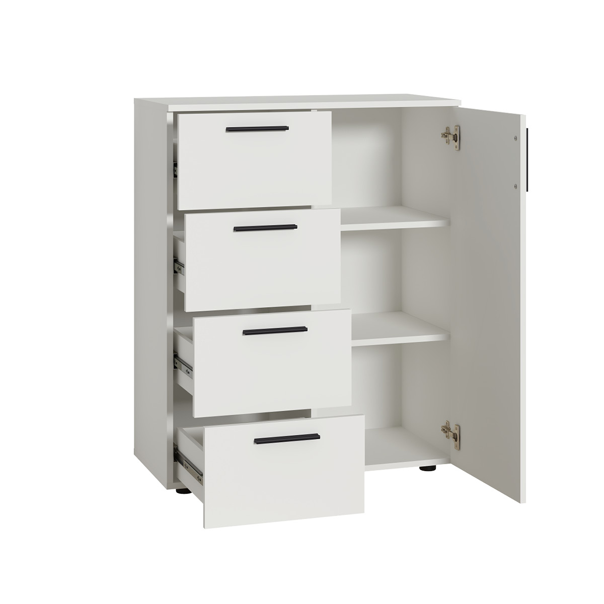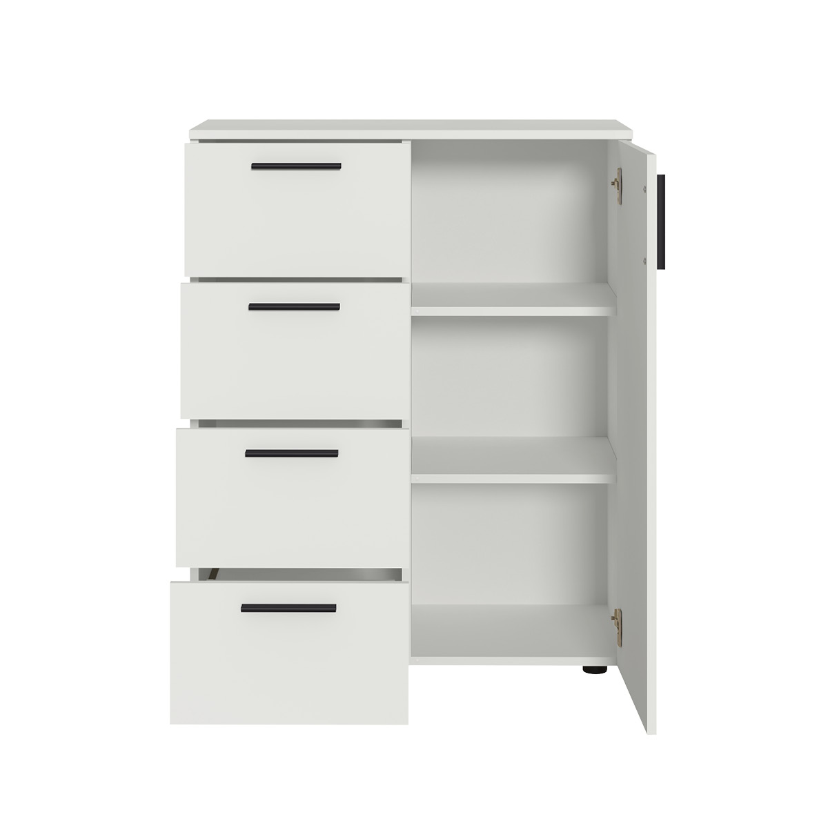 Модули универсальны и сочетаются между собой. Открытые и закрытые ниши для хранения, защитные пластиковые демпферы, съемные полки, направляющие полного выдвижения в ящиках – комфорт продуман до мелочей.