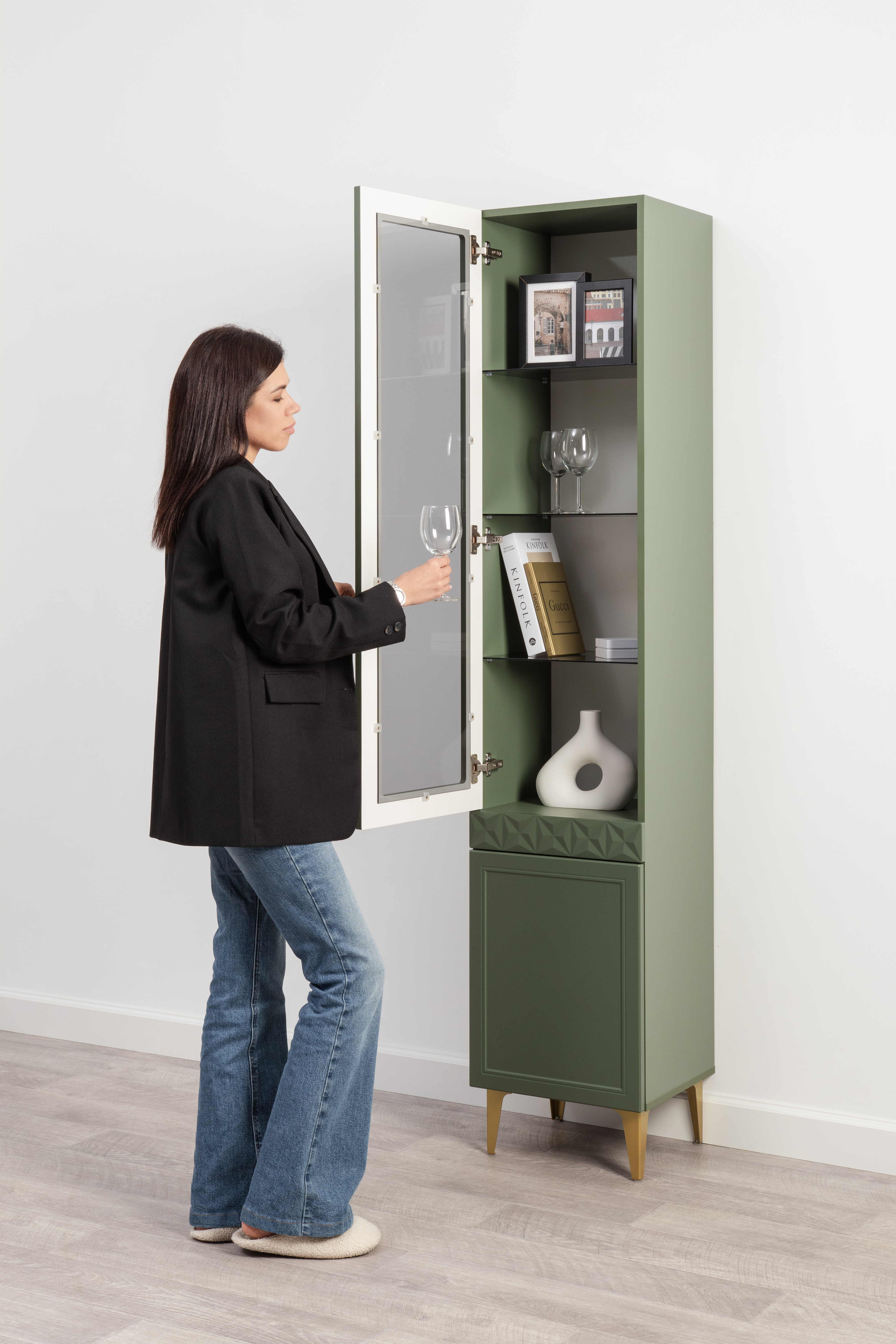 В коллекции представлены три типа витрин с тонированным закалённым стеклом, которые придают пространству лёгкость и свет. «Марион» — идеальное сочетание традиций и актуального дизайна в каждой детали.
