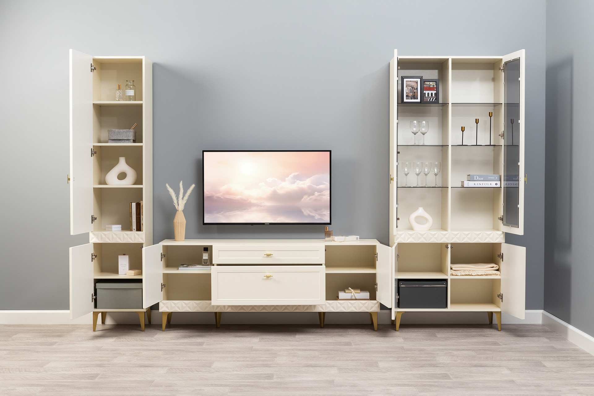 Гостиная Марион композиция 1 слоновая кость С341 PE, слоновая кость 6898 ПВХ, белый PE шагрень (собирается на любую сторону)