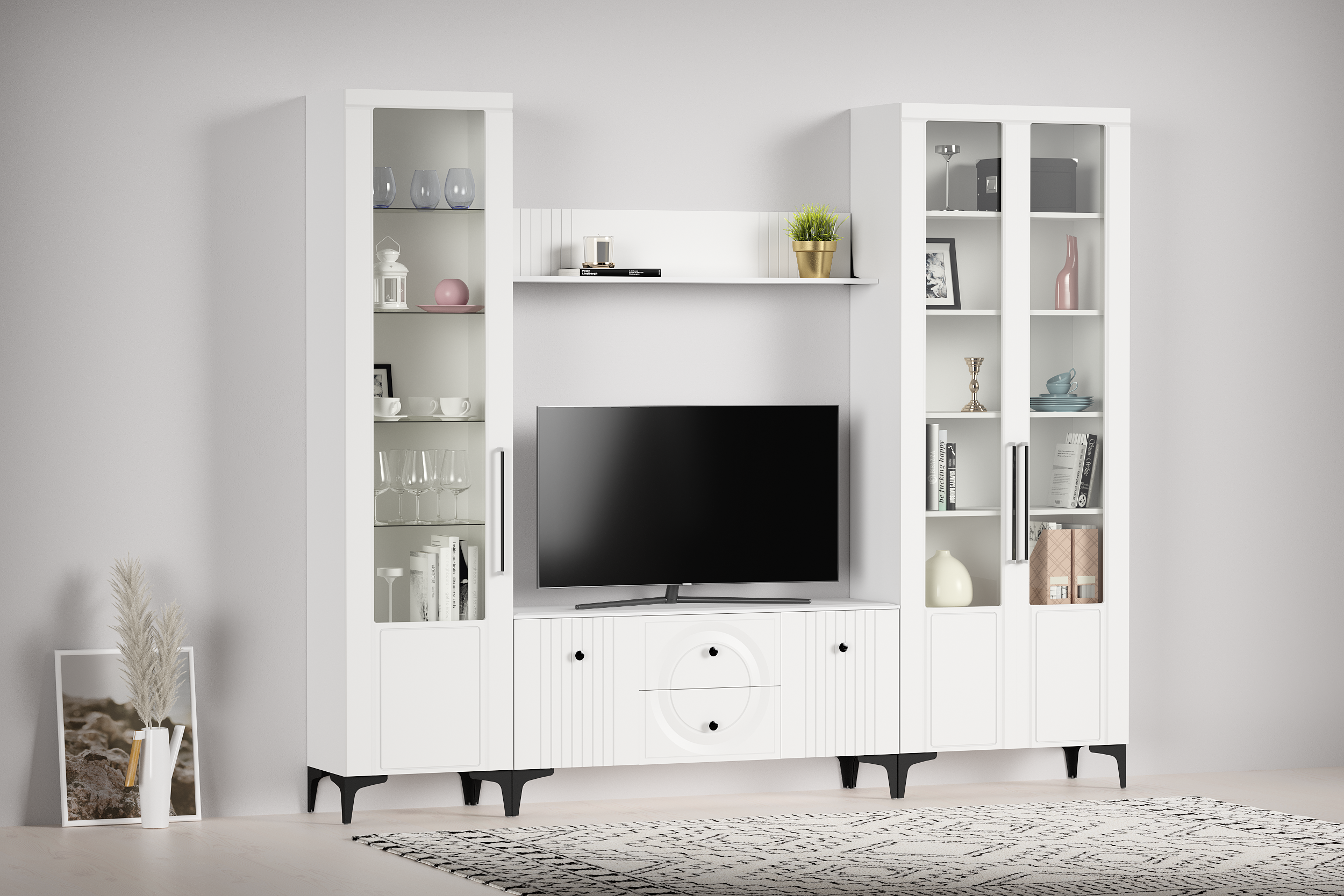 Шкаф в гостиную Валенсия 13.217 белый PE шагрень, белая шагрень ПВХ