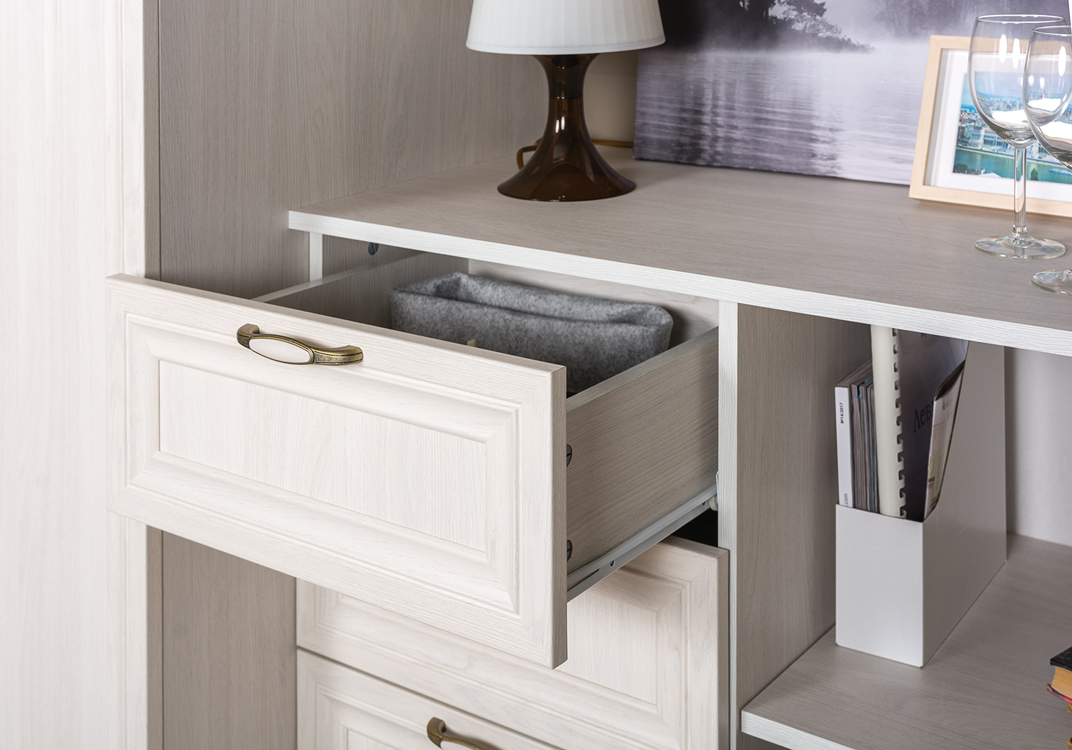 Комод Бостон 13.115 дуб эндгрейн элегантный, милк рикамо софт ПВХ