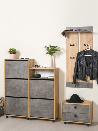 Обратите внимание, как обувница гармонирует с другими модулями коллекции Крафт: