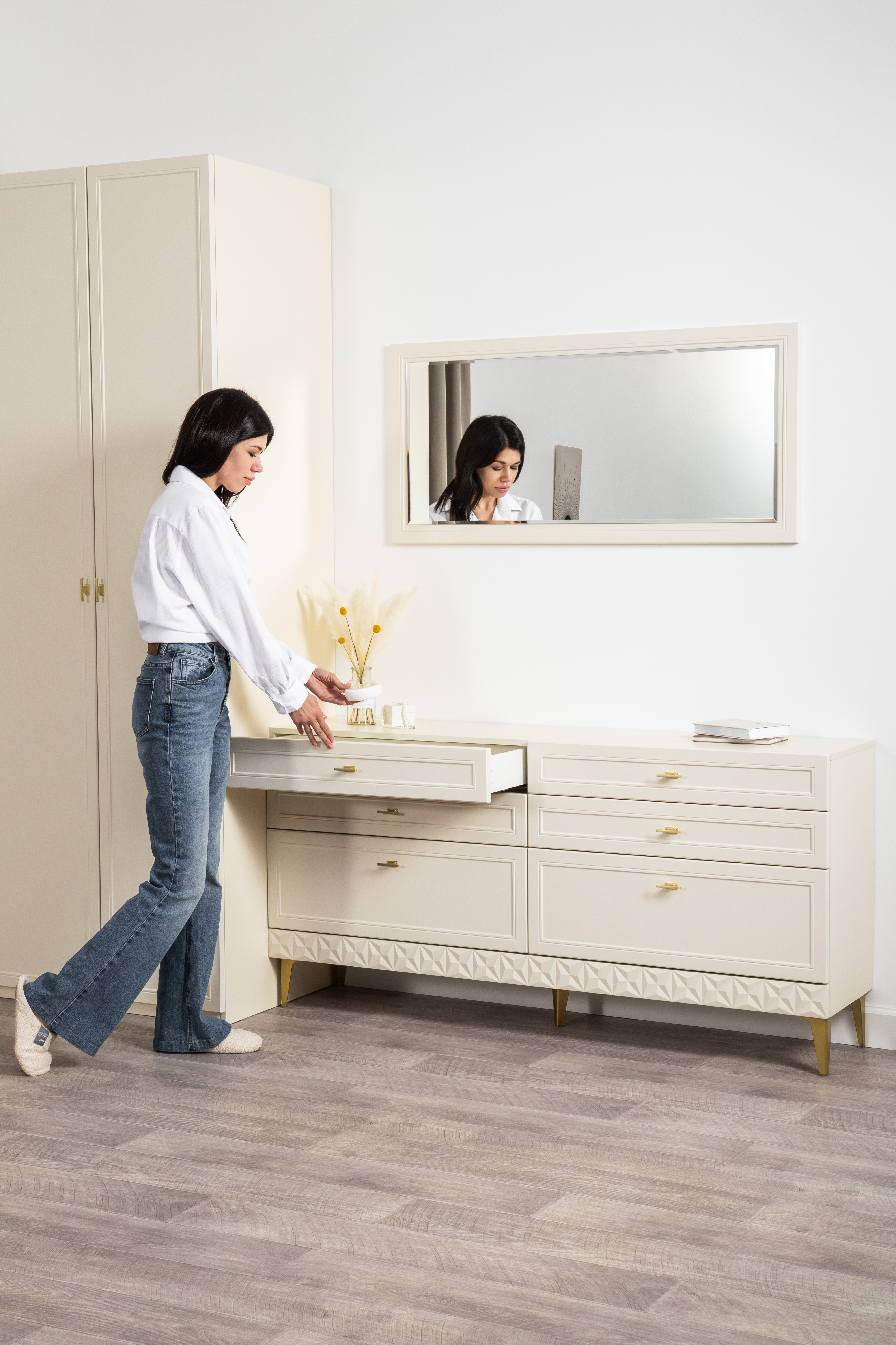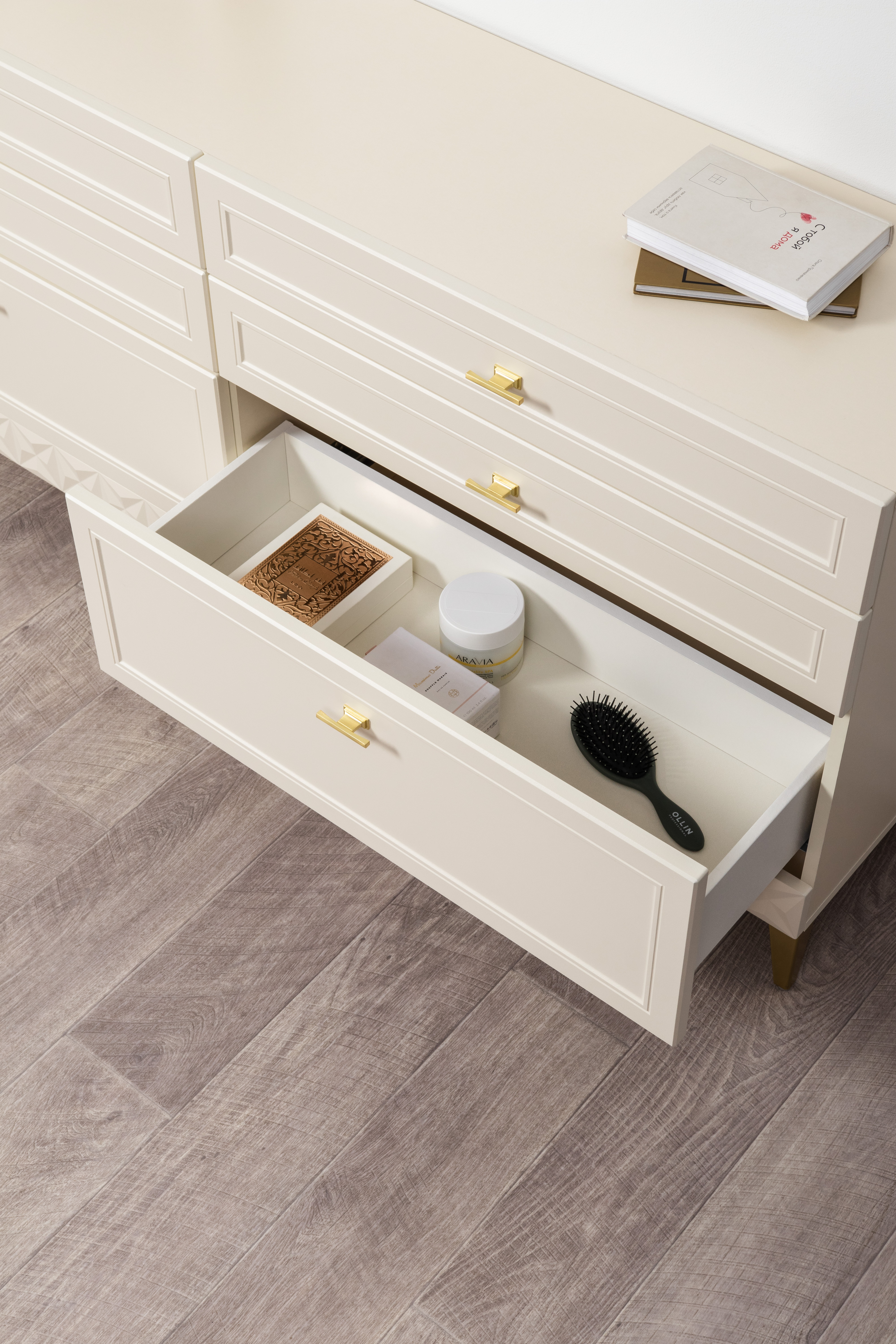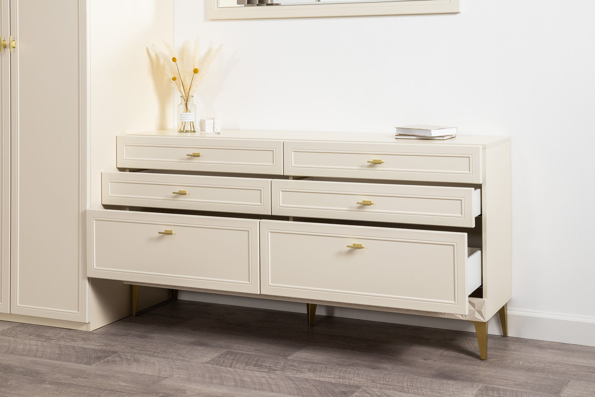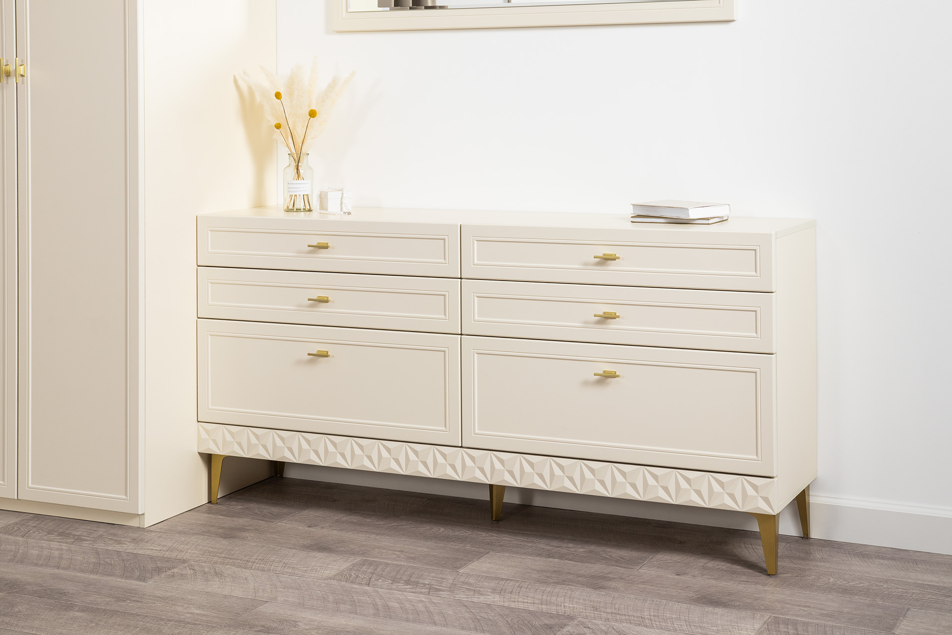 Комод Марион 16.256 Слоновая кость С341 PE, Слоновая кость 6898 ПВХ, Белый PE шагрень